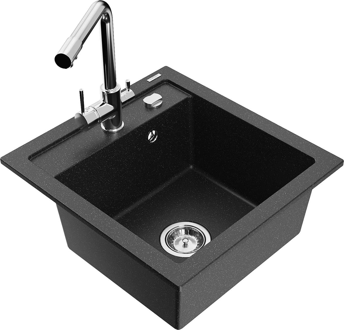 Mexen Vito lavello in granito a 1 vasca con miscelatore da cucina Duero, nero/argento metallizzato - 6503-73-671600-00