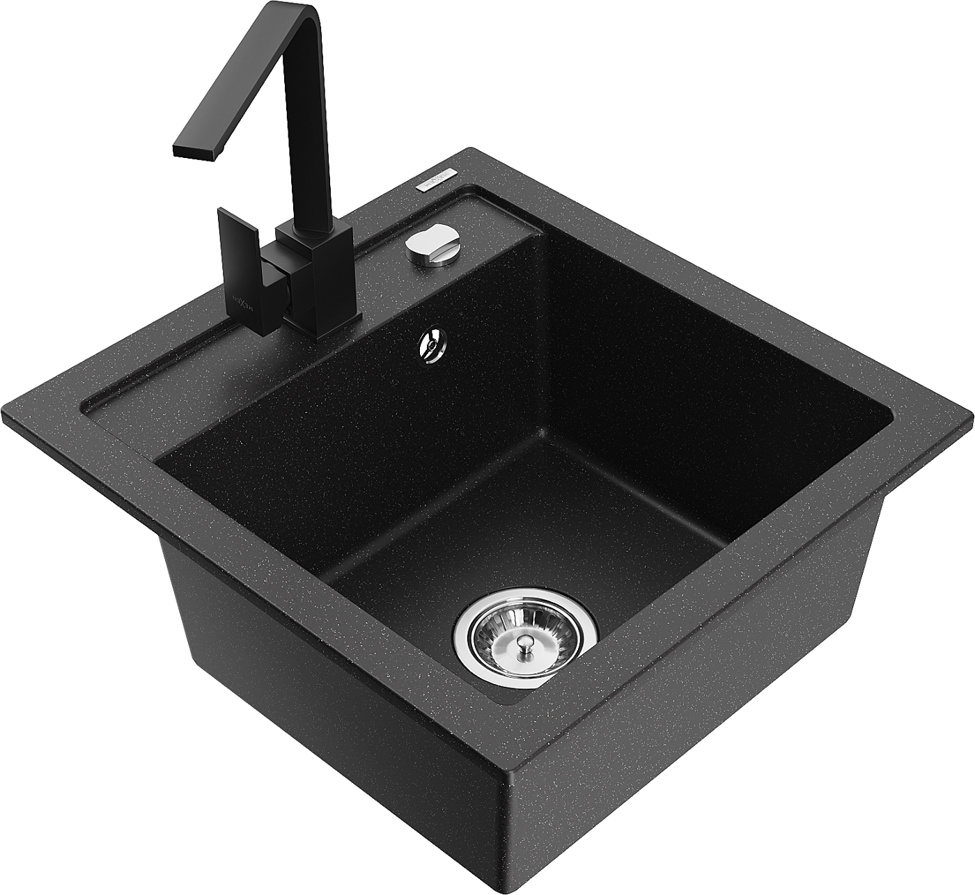 Mexen Vito lavello da cucina in granito a 1 vasca con rubinetto da cucina Rita, nero/argento metallizzato - 6503-73-670300-70