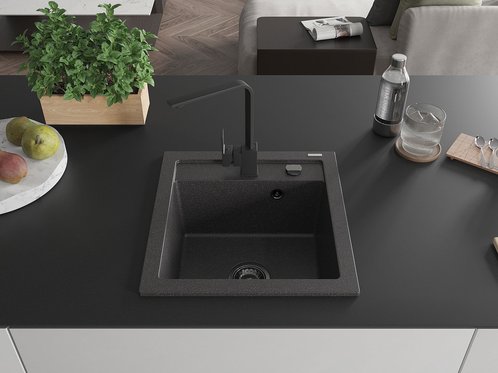 Mexen Vito lavello in granito a 1 vasca con miscelatore da cucina Rita, nero maculato - 6503-76-670300-70-B