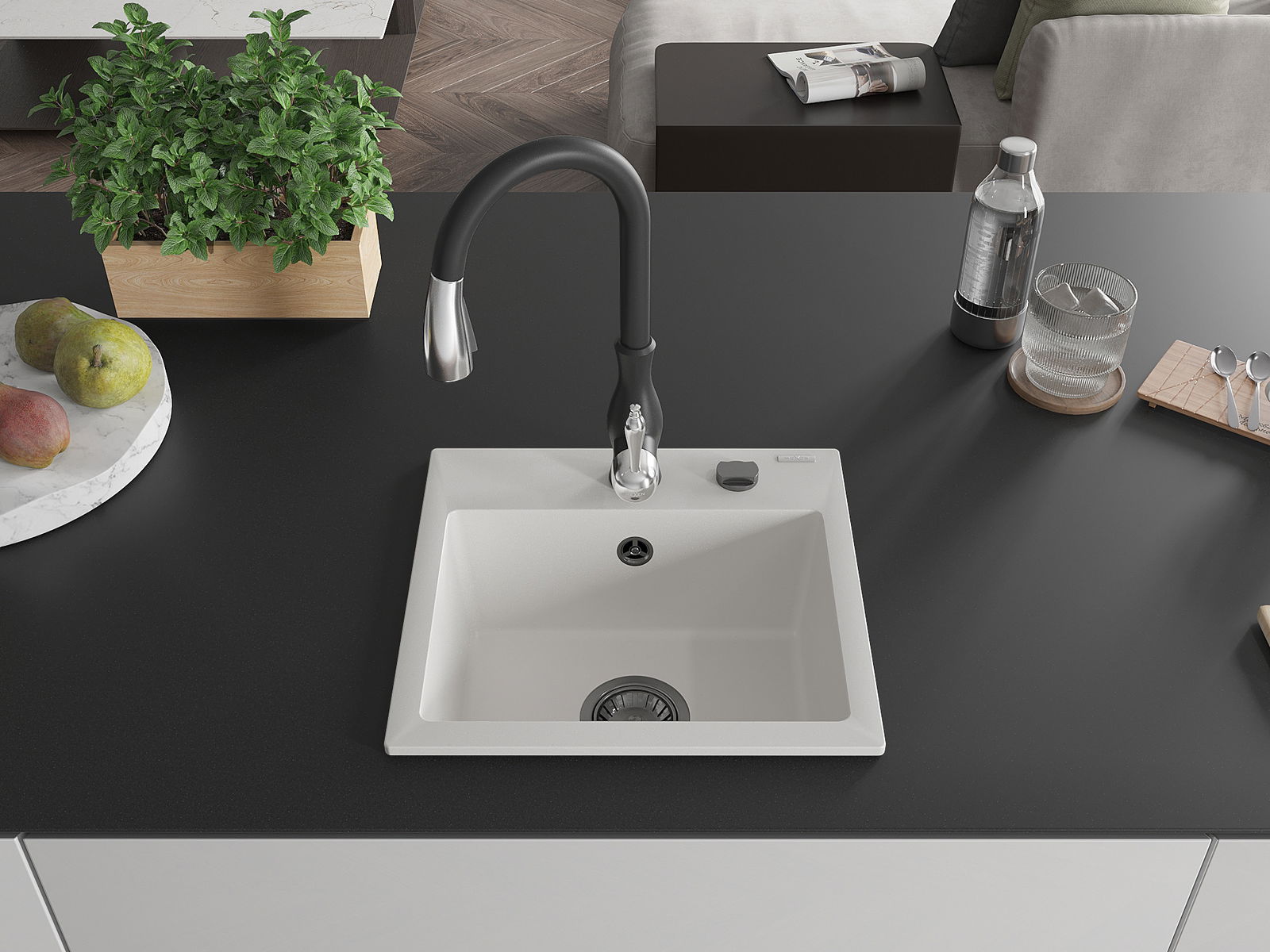 Il lavello è realizzato in granito di alta qualità. Rappresenta un complemento elegante e, soprattutto, pratico per ogni cucina, indipendentemente dal suo stile. L'alta qualità e la durata del granito garantiscono un utilizzo che dura per molti anni.