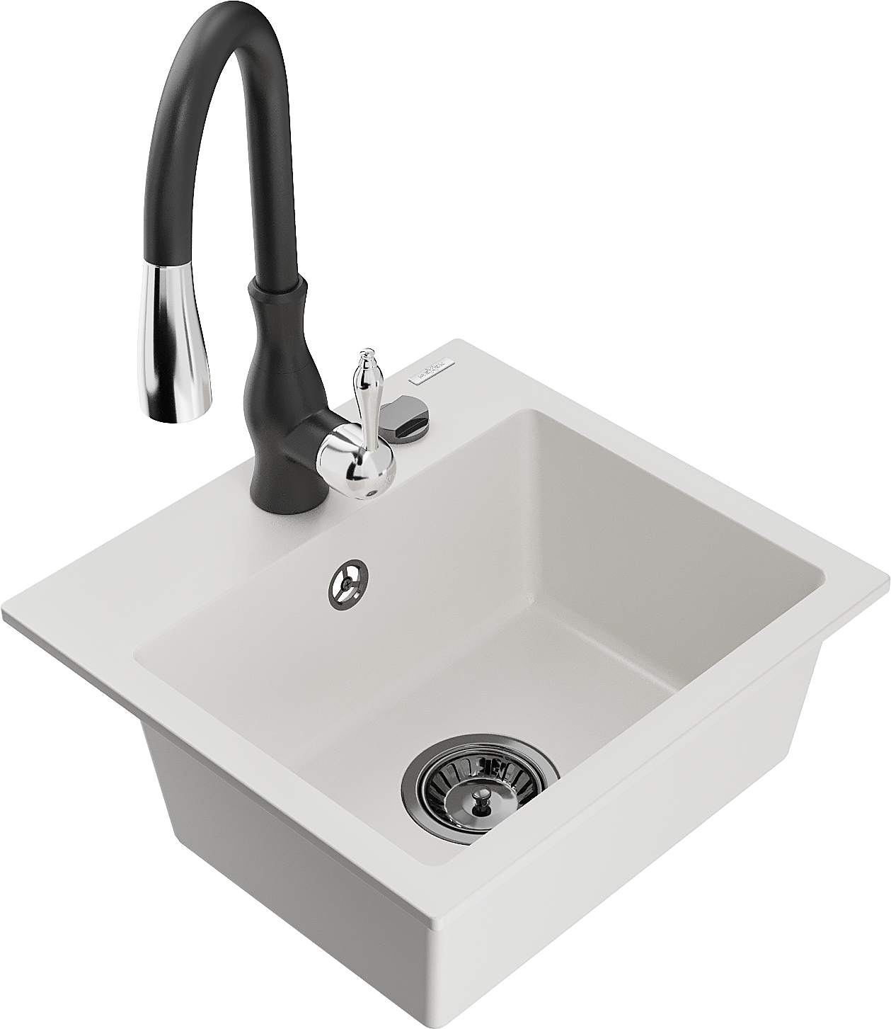 Mexen Milo lavello da cucina in granito con 1 vasca e rubinetto Savita, bianco - 6505-20-672601-70