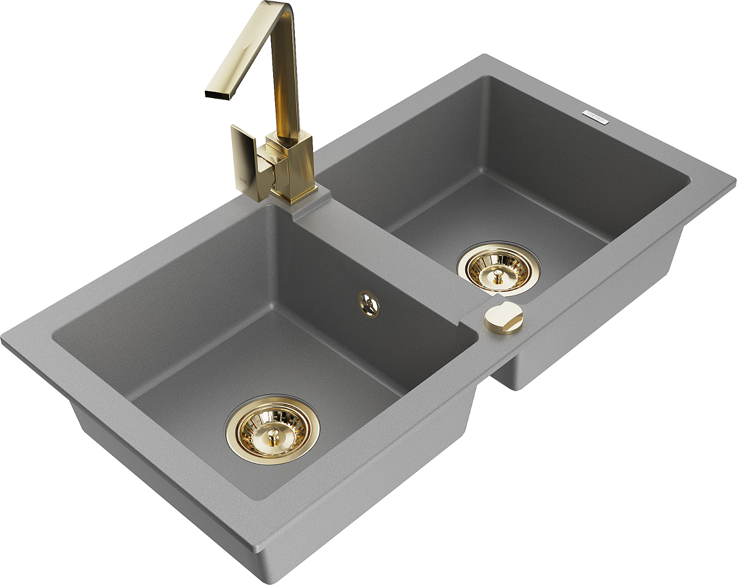 Mexen Mario lavello da cucina in granito a 2 vasche con rubinetto Rita, grigio - 6504-71-670300-50