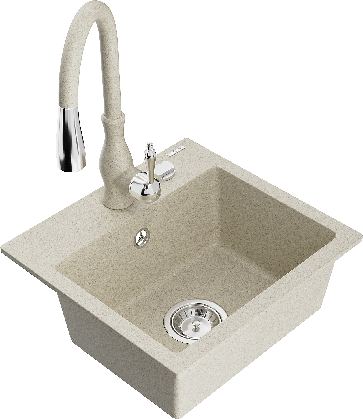 Mexen Milo lavello da cucina in granito 1-vasca con miscelatore Savita, beige - 6505-69-672601-69