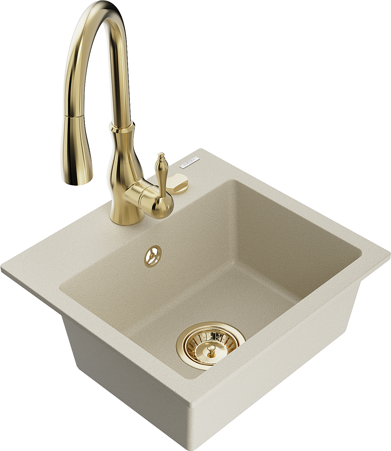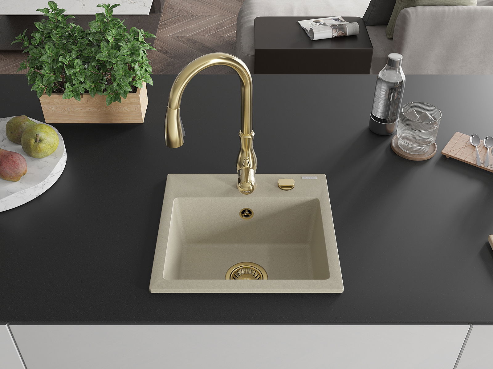 Mexen Milo lavello in granito a 1 vasca con rubinetto da cucina Savita, beige - 6505-69-672601-50