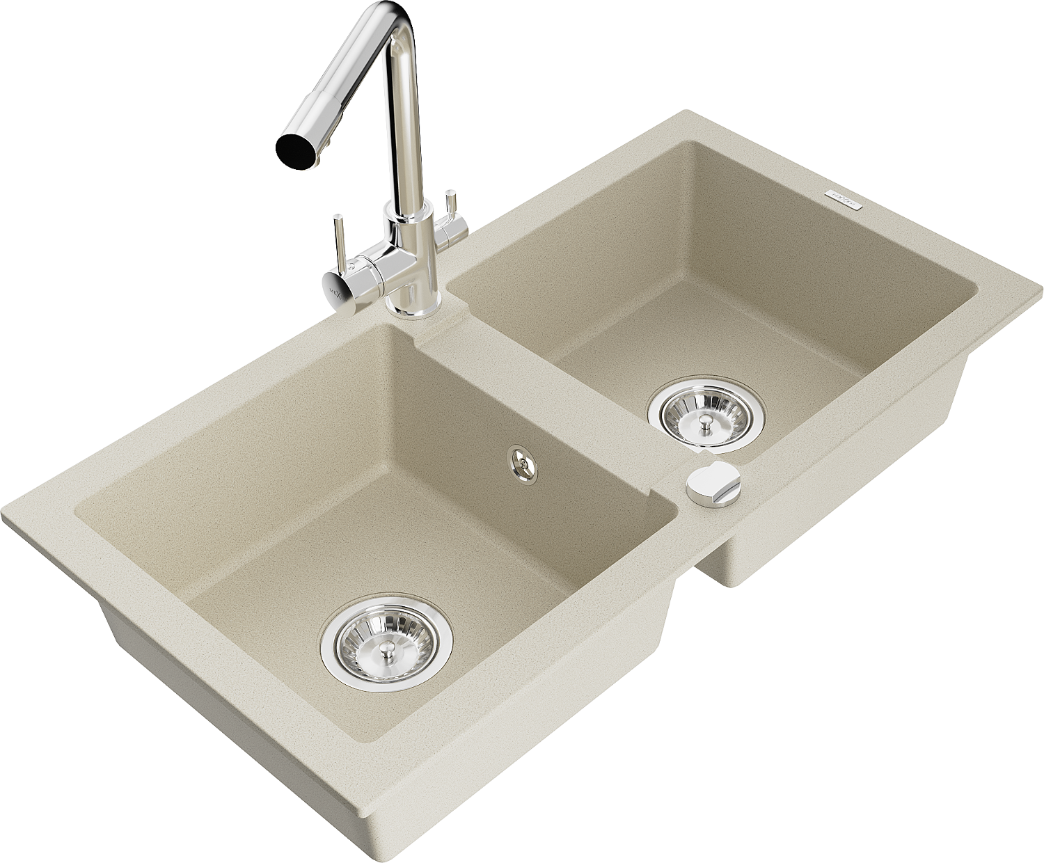 Mexen Mario lavello in granito a 2 vasche con rubinetto da cucina Duero, beige - 6504-69-671600-00