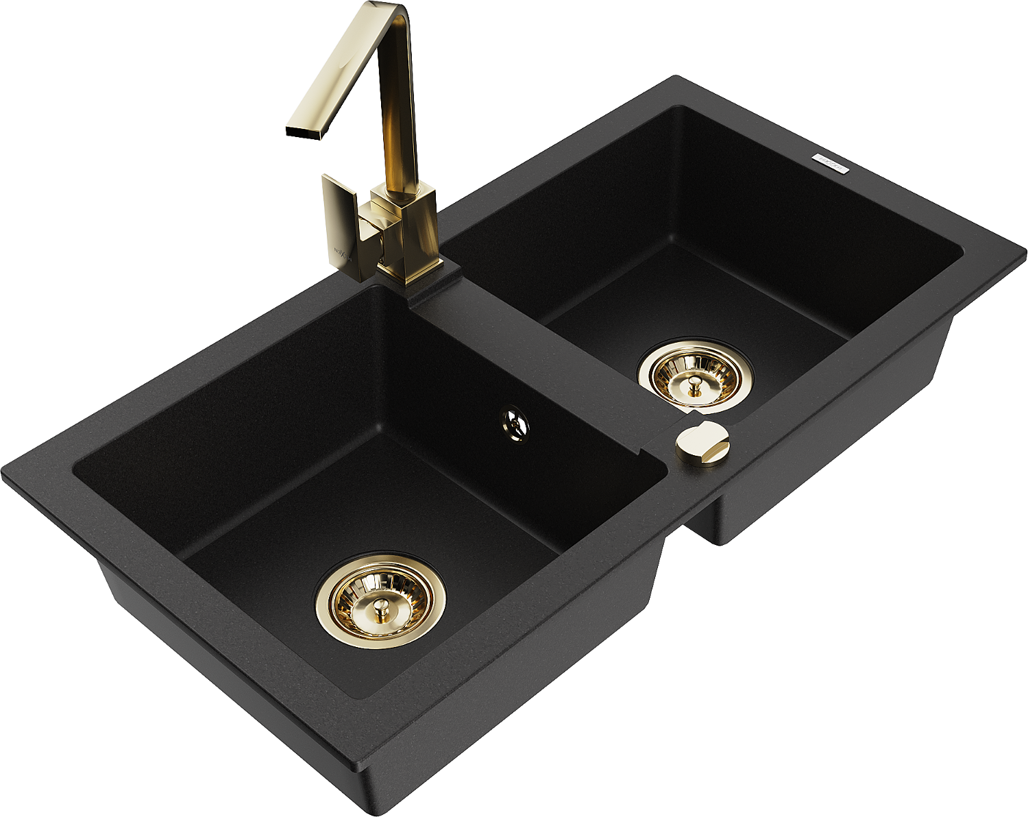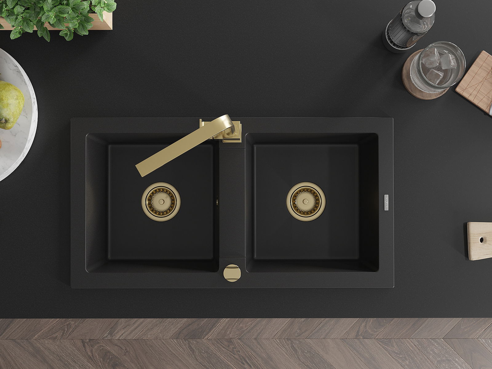 Mexen Mario lavello in granito a 2 vasche con rubinetto da cucina Rita, nero - 6504-77-670300-50