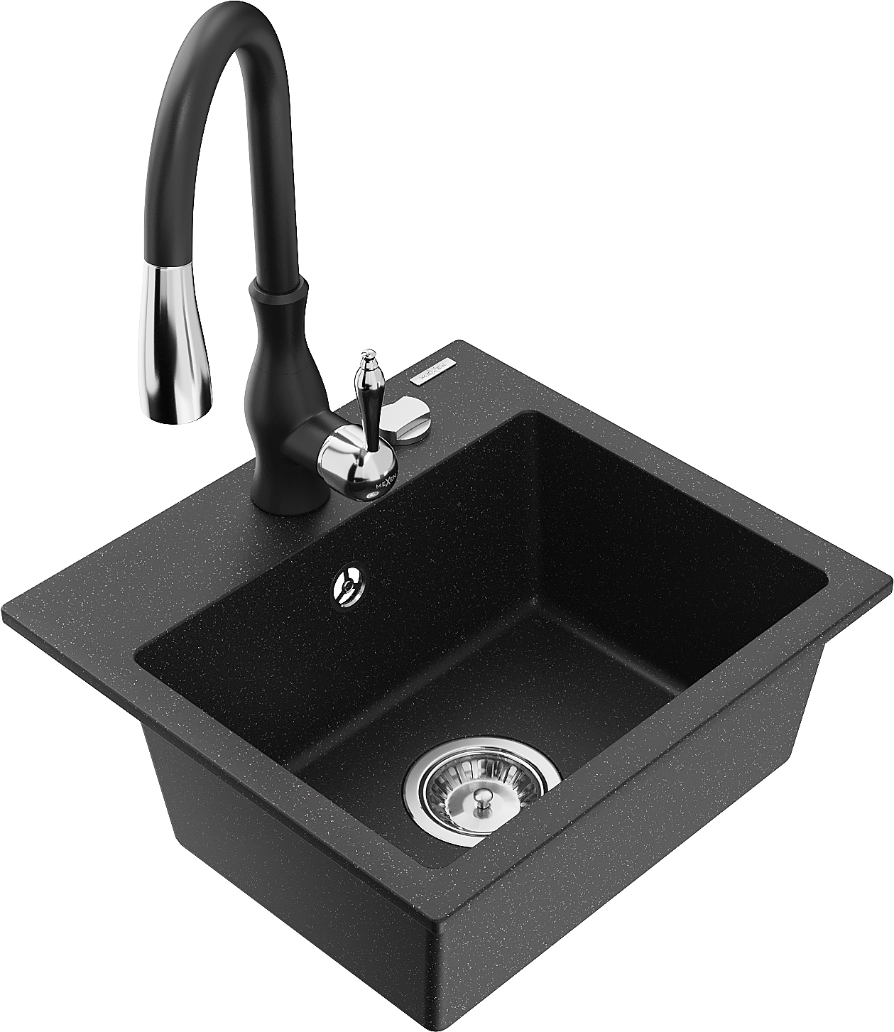 Mexen Milo lavello in granito a 1 vasca con rubinetto da cucina Savita, nero/argento metallizzato- 6505-73-672601-70