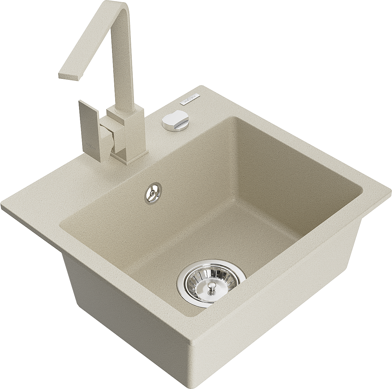 Mexen Milo lavello da cucina in granito a 1 vasca con miscelatore cucina Rita, beige - 6505-69-670300-69