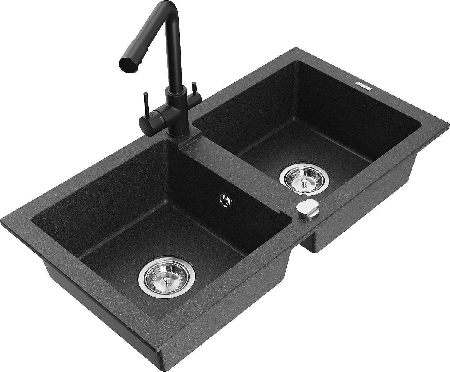 Mexen Mario lavello in granito a 2 vasche con rubinetto da cucina Duero, nero maculato - 6504-76-671600-70