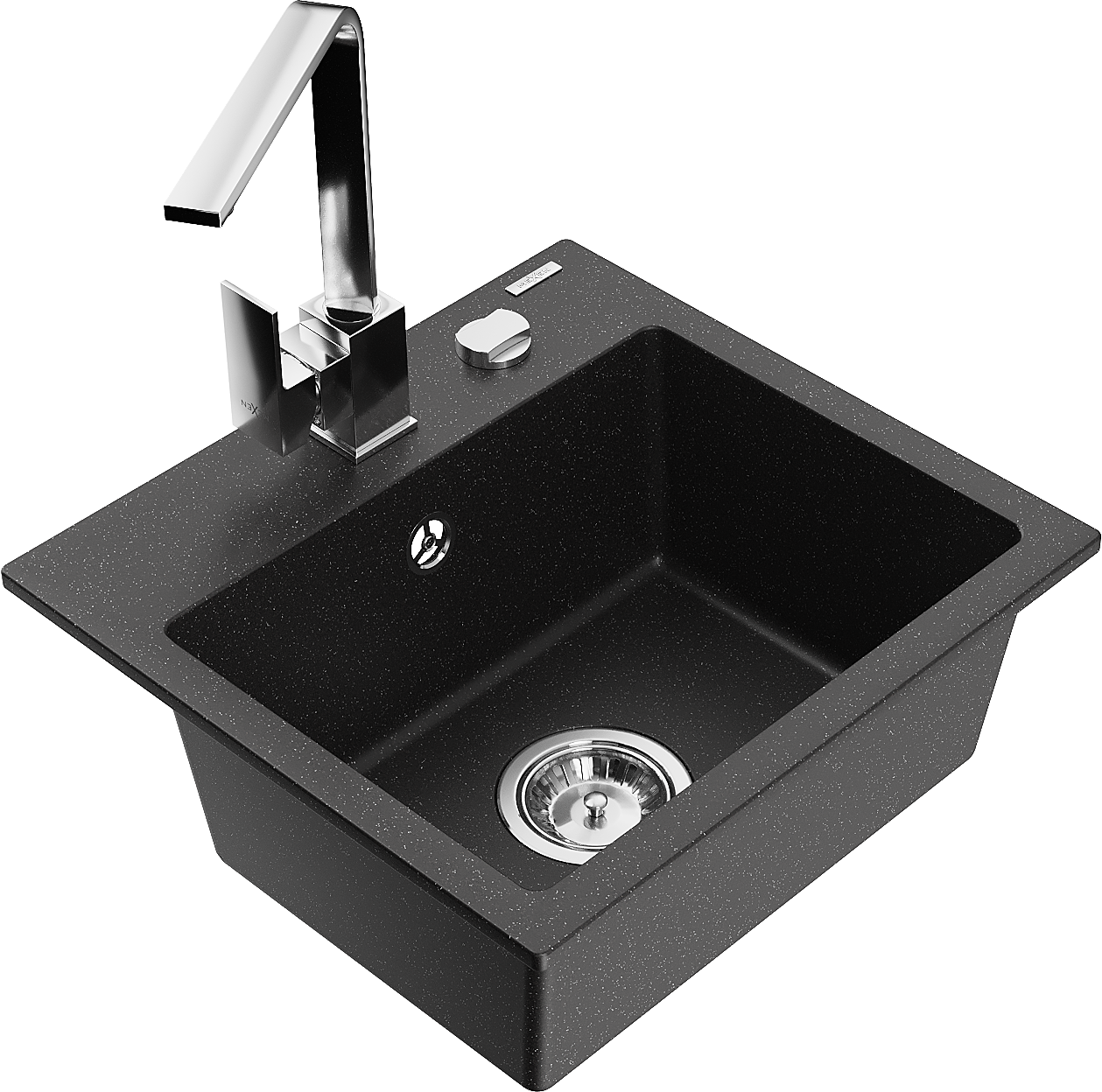 Mexen Milo lavello in granito a 1 vasca con rubinetto da cucina Rita, nero/metallo argento - 6505-73-670300-00