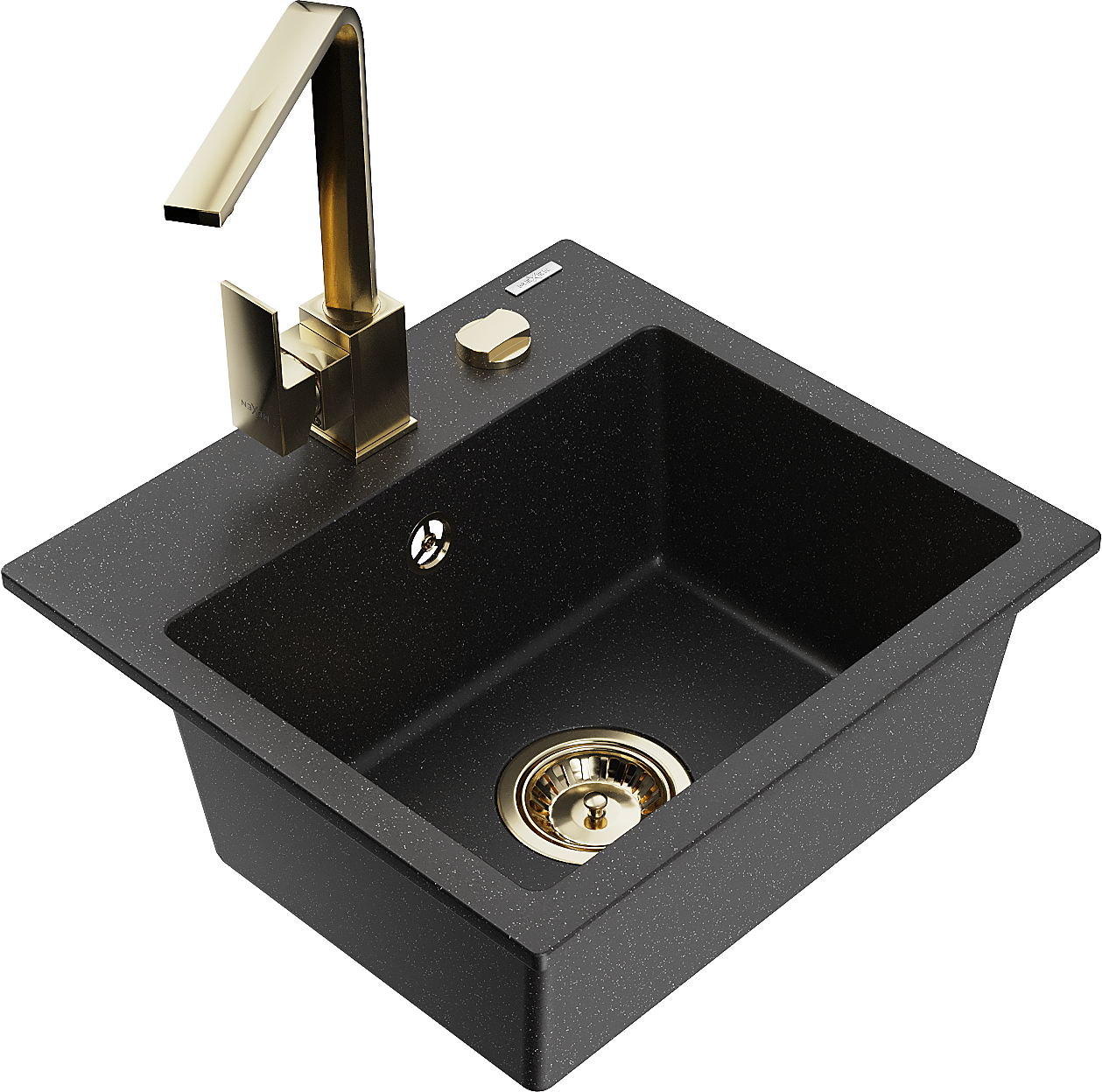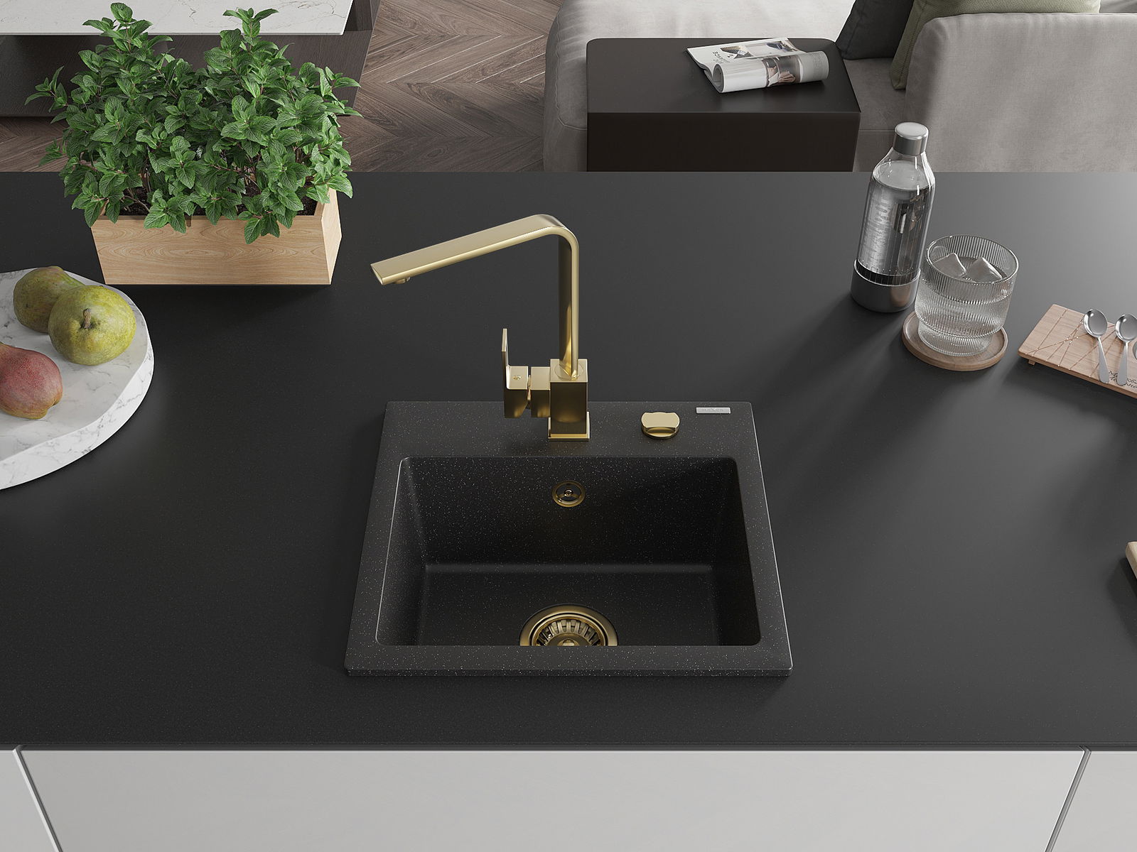 Mexen Milo lavello da cucina in granito 1 vasca con miscelatore Rita, nero/metallizzato argento - 6505-73-670300-50