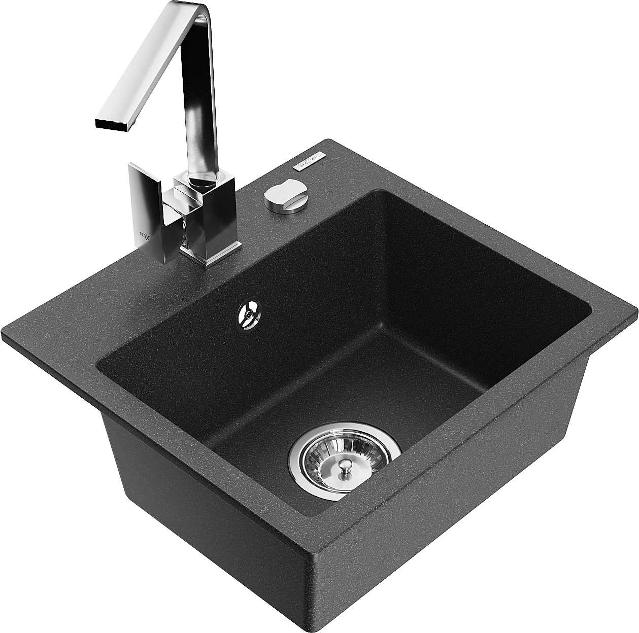 Mexen Milo lavello in granito a 1 vasca con miscelatore cucina Rita, nero maculato - 6505-76-670300-00