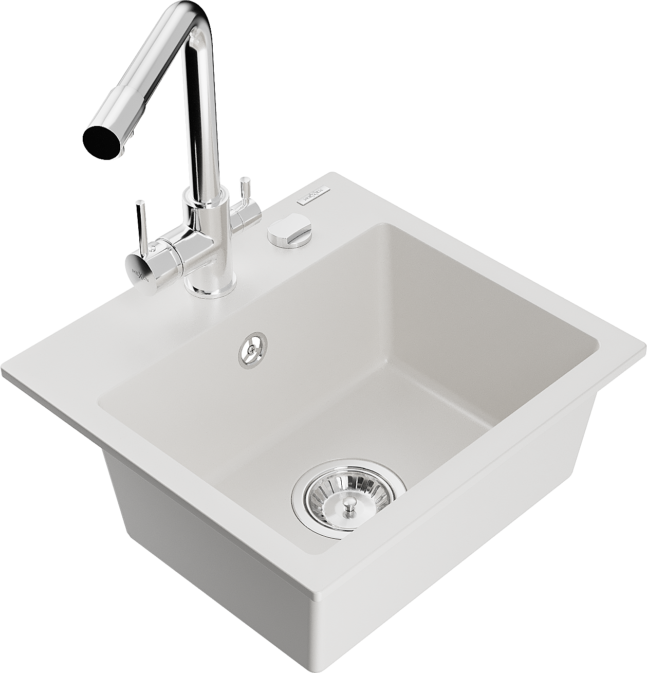 Mexen Milo lavello in granito a 1 vasca con rubinetto da cucina Duero, bianco - 6505-20-671600-00