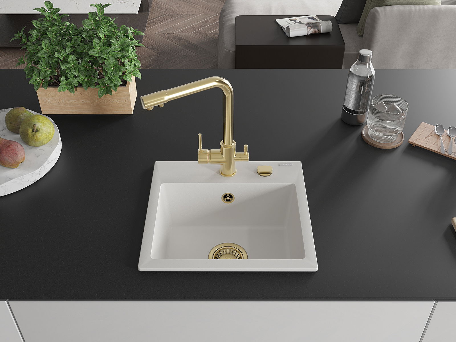Mexen Milo lavello in granito a 1 vasca con rubinetto da cucina Duero, bianco - 6505-20-671600-50
