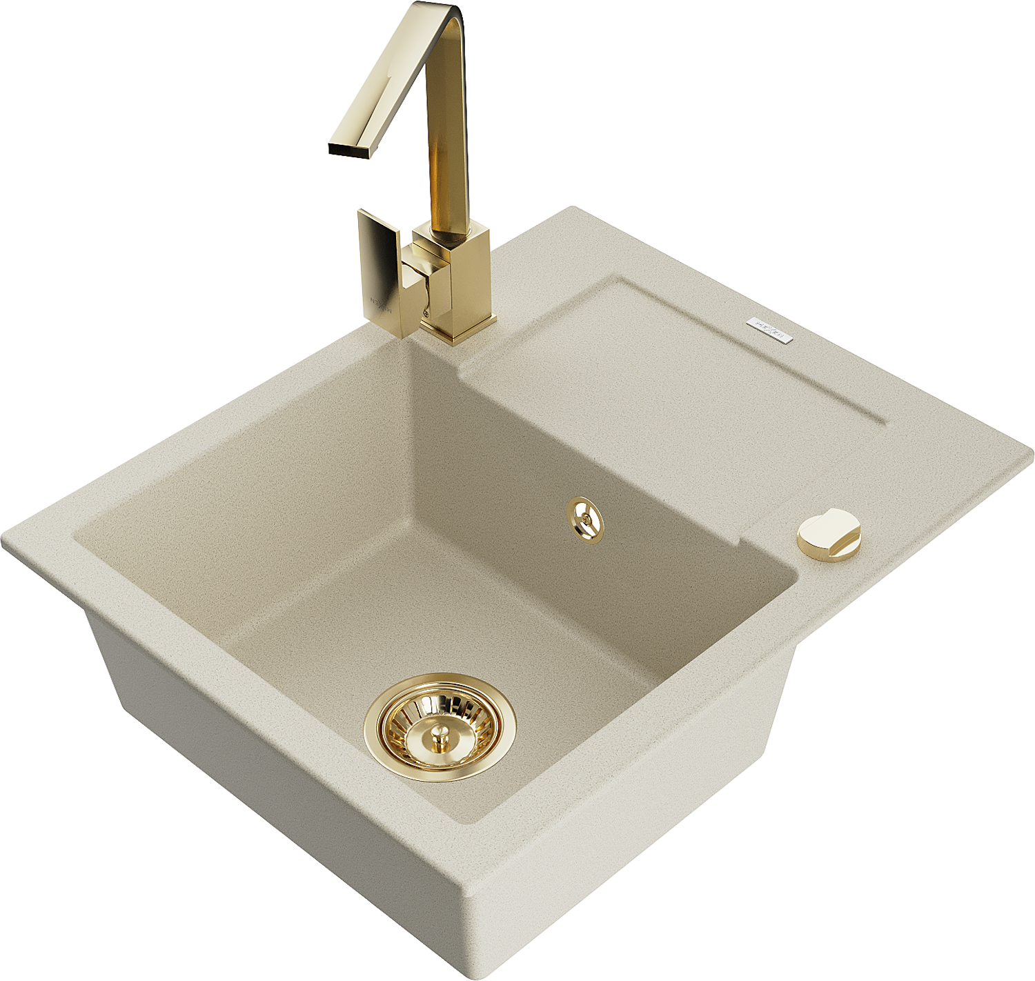 Mexen Enzo lavello in granito a una vasca con scolapiatti e miscelatore cucina Rita, beige - 6506-69-670300-50