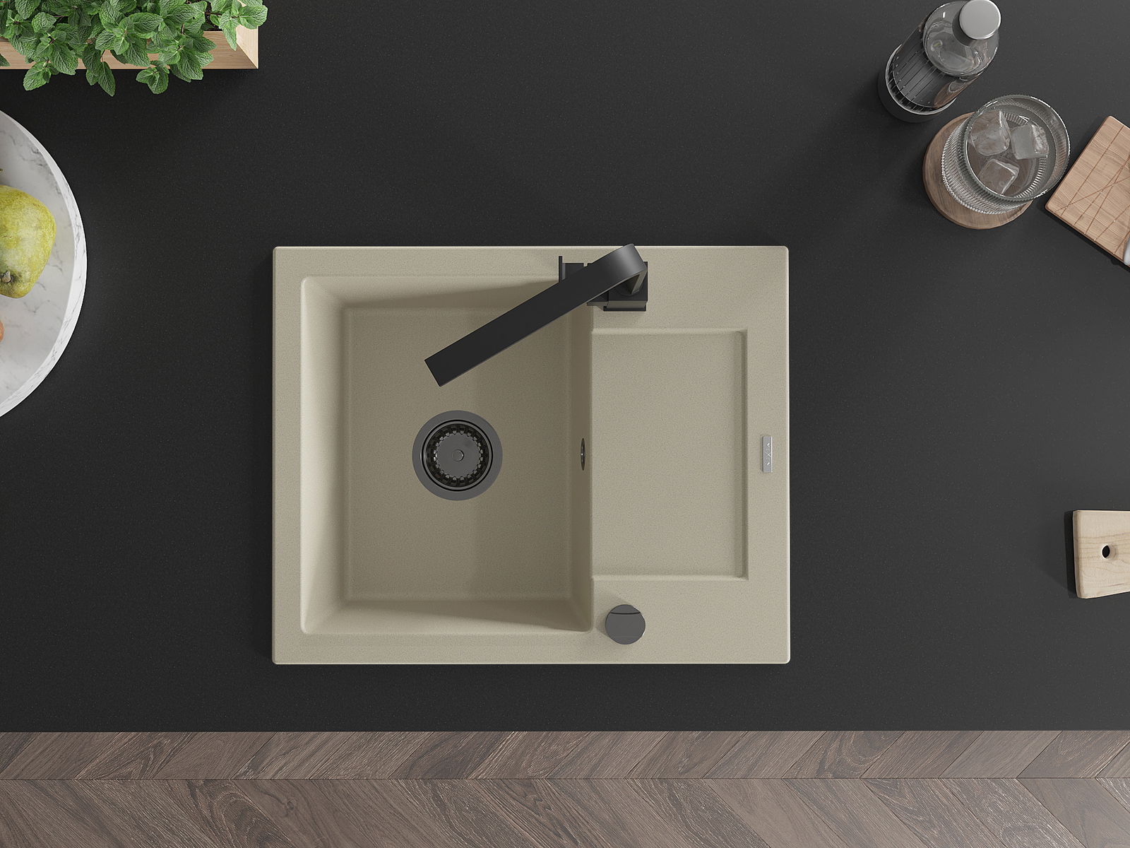 Mexen Enzo lavello in granito a 1 vasca con sgocciolatoio e rubinetto da cucina Rita, beige - 6506-69-670300-70
