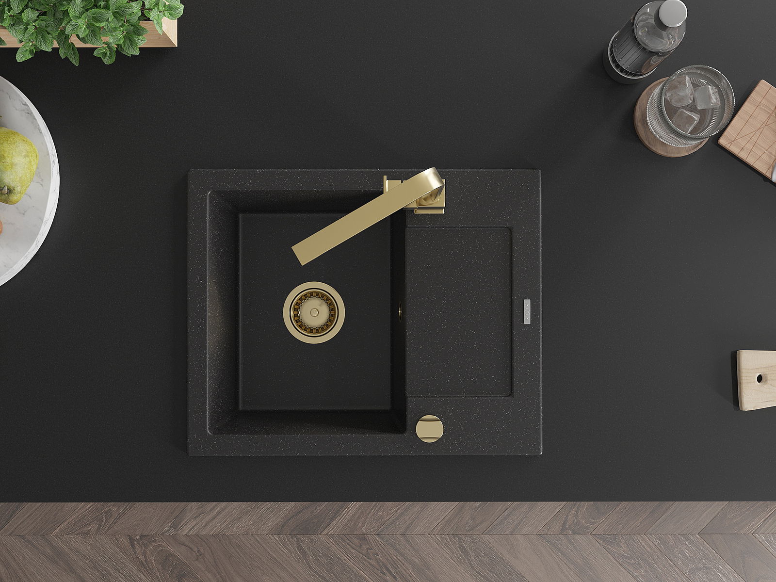 Mexen Enzo lavello in granito a 1 vasca con sgocciolatoio e rubinetto da cucina Rita, nero/argento metallico - 6506-73-670300-50