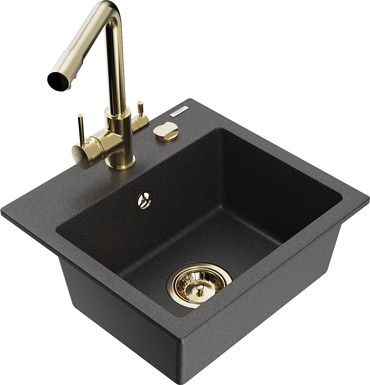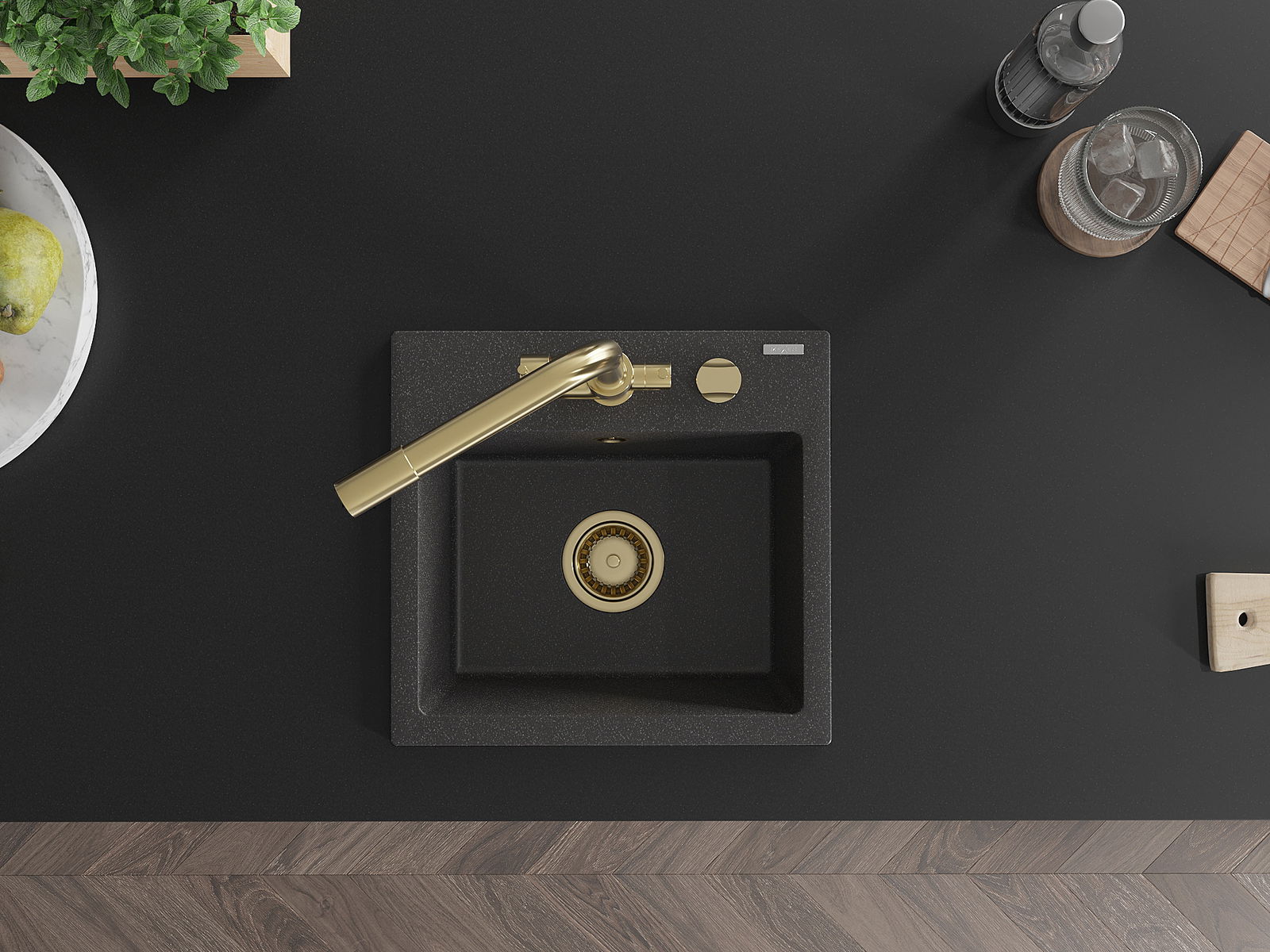 Mexen Milo lavello in granito a 1 vasca con rubinetto da cucina Duero, nero maculato - 6505-76-671600-50
