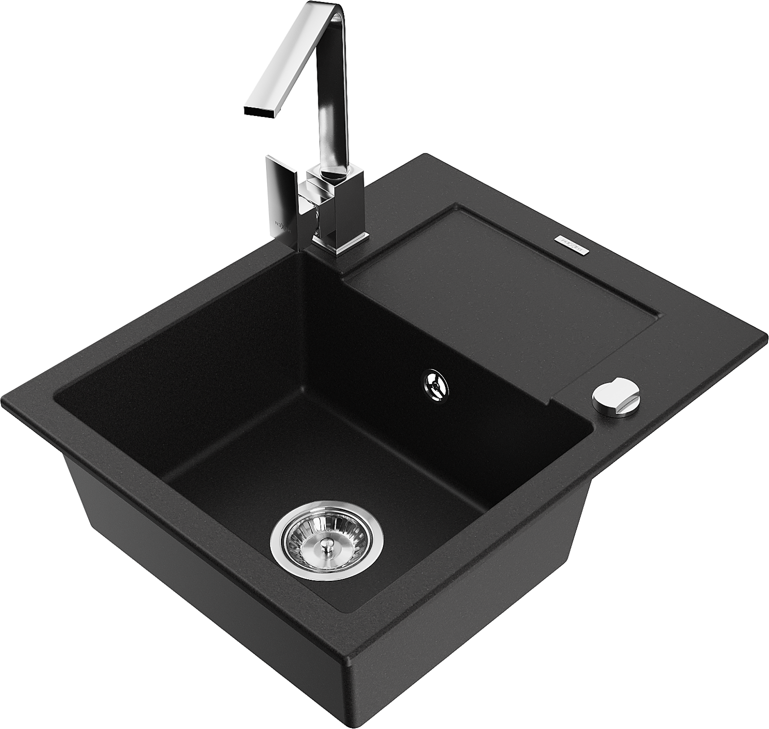 Mexen Enzo lavello in granito 1-vasca con scolapiatti e rubinetto da cucina Rita, nero - 6506-77-670300-00