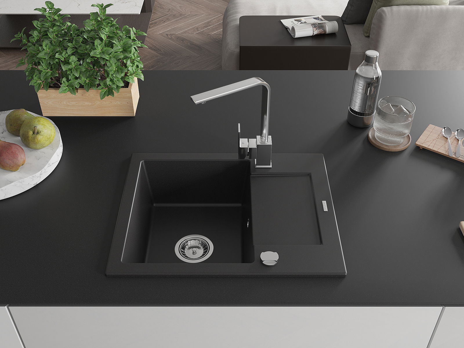 Il lavello è realizzato in granito di alta qualità. Rappresenta un complemento elegante e, soprattutto, pratico per ogni cucina, indipendentemente dal suo stile. L'alta qualità e la durata del granito garantiscono un utilizzo che dura per molti anni.