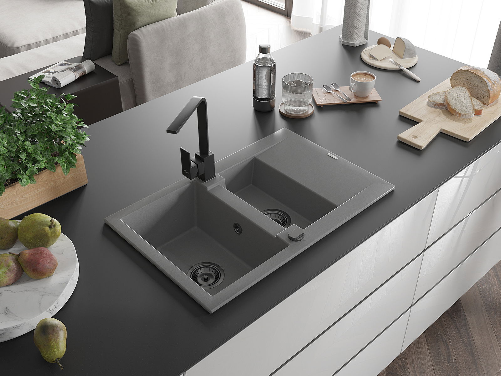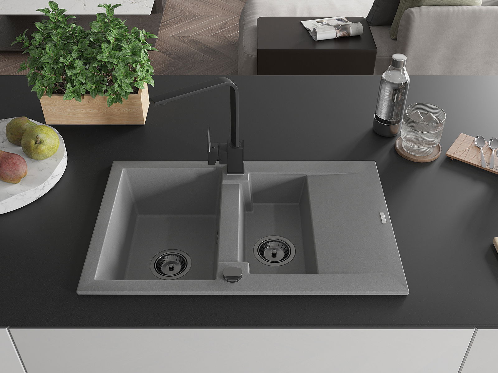 Il lavello è realizzato in granito di alta qualità. Rappresenta un complemento elegante e, soprattutto, pratico per ogni cucina, indipendentemente dal suo stile. L'alta qualità e la durata del granito garantiscono un utilizzo che dura per molti anni.