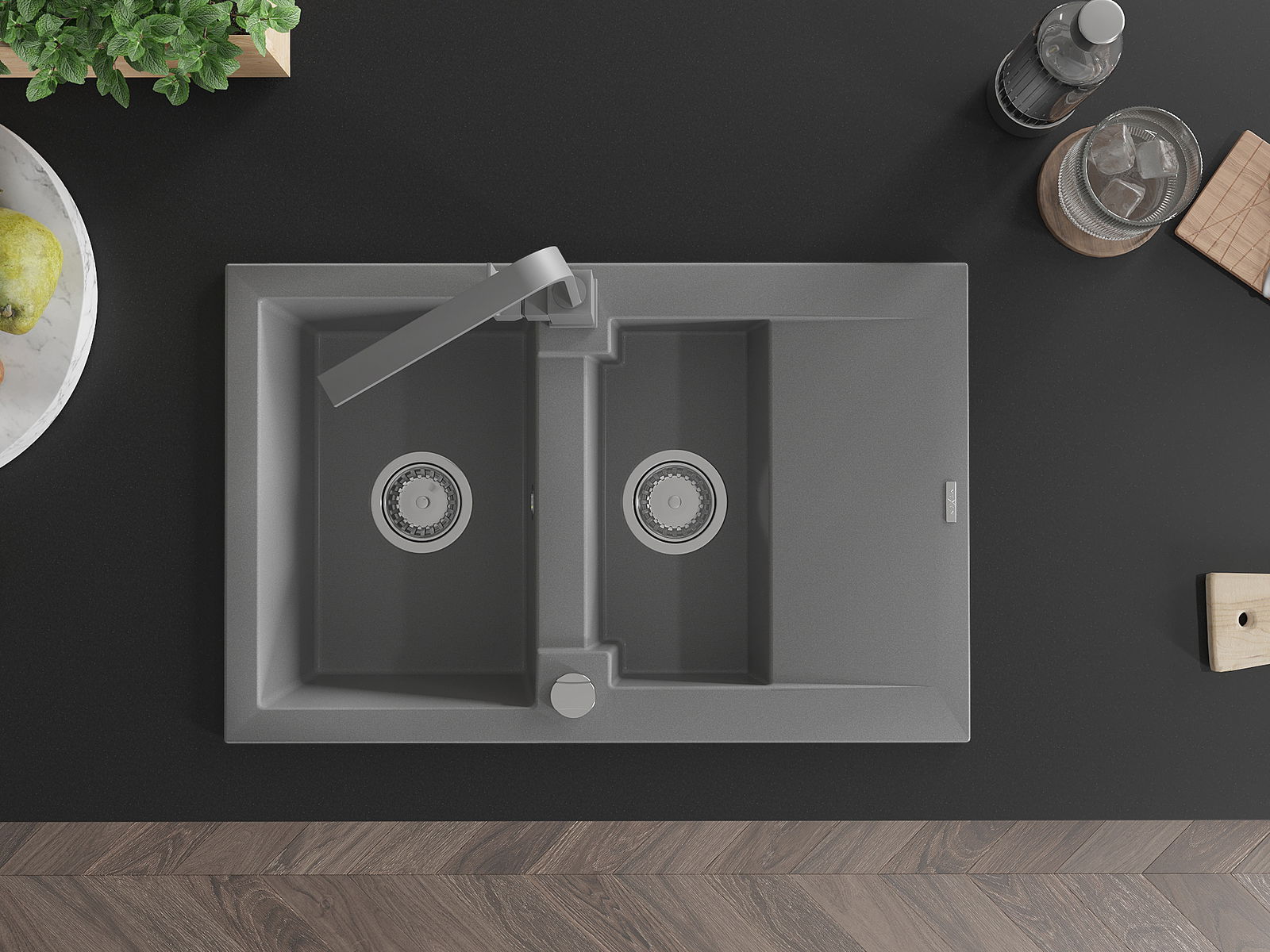 Mexen Gaspar lavello in granito 1,5 vasca con scolapiatti e rubinetto da cucina Rita, grigio - 6507-71-670300-71