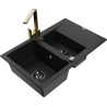 Mexen Gaspar lavello in granito 1,5 vasca con sgocciolatoio e rubinetto da cucina Rita, nero/oro - 6507-75-670300-50-B