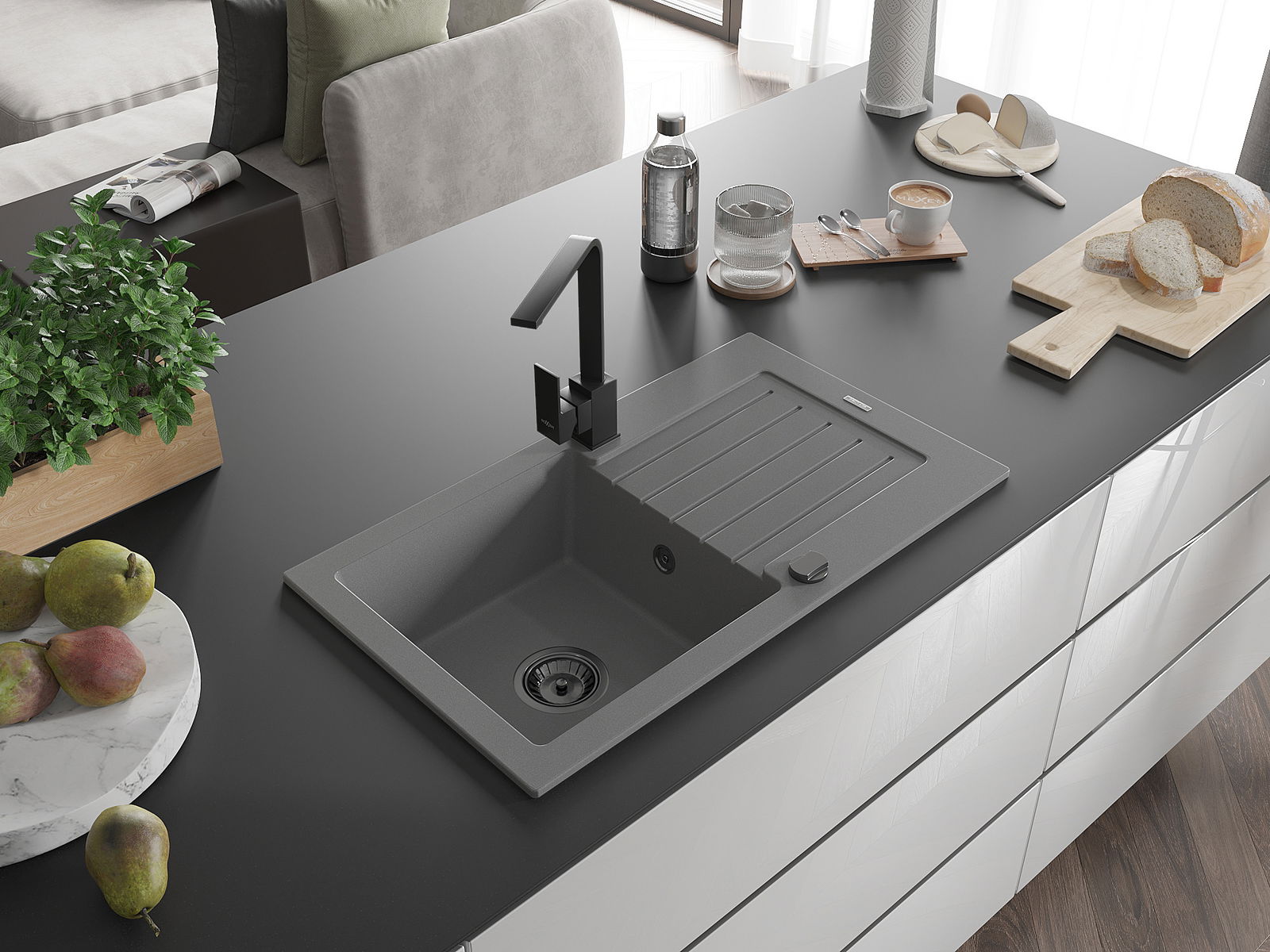 La scelta di un lavello con sgocciolatoio è una soluzione pratica che consente di riporre piatti, verdure e frutta lavati. Lo sgocciolatoio facilita la cucina quotidiana e aiuta a mantenere l'ordine in cucina.