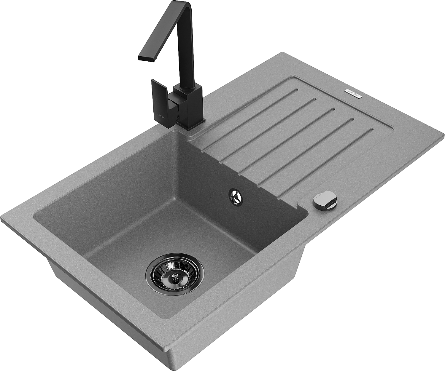 Mexen Pablo lavello in granito a 1 vasca con scolapiatti e miscelatore cucina Rita, grigio - 6510-71-670300-70-B