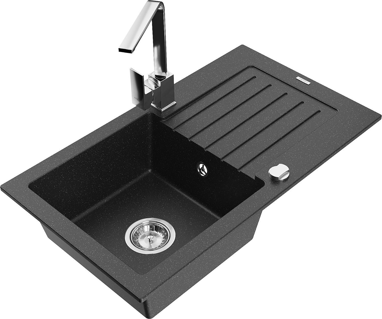 Mexen Pablo lavello in granito a 1 vasca con sgocciolatoio e rubinetto da cucina Rita, nero/grigio metallizzato