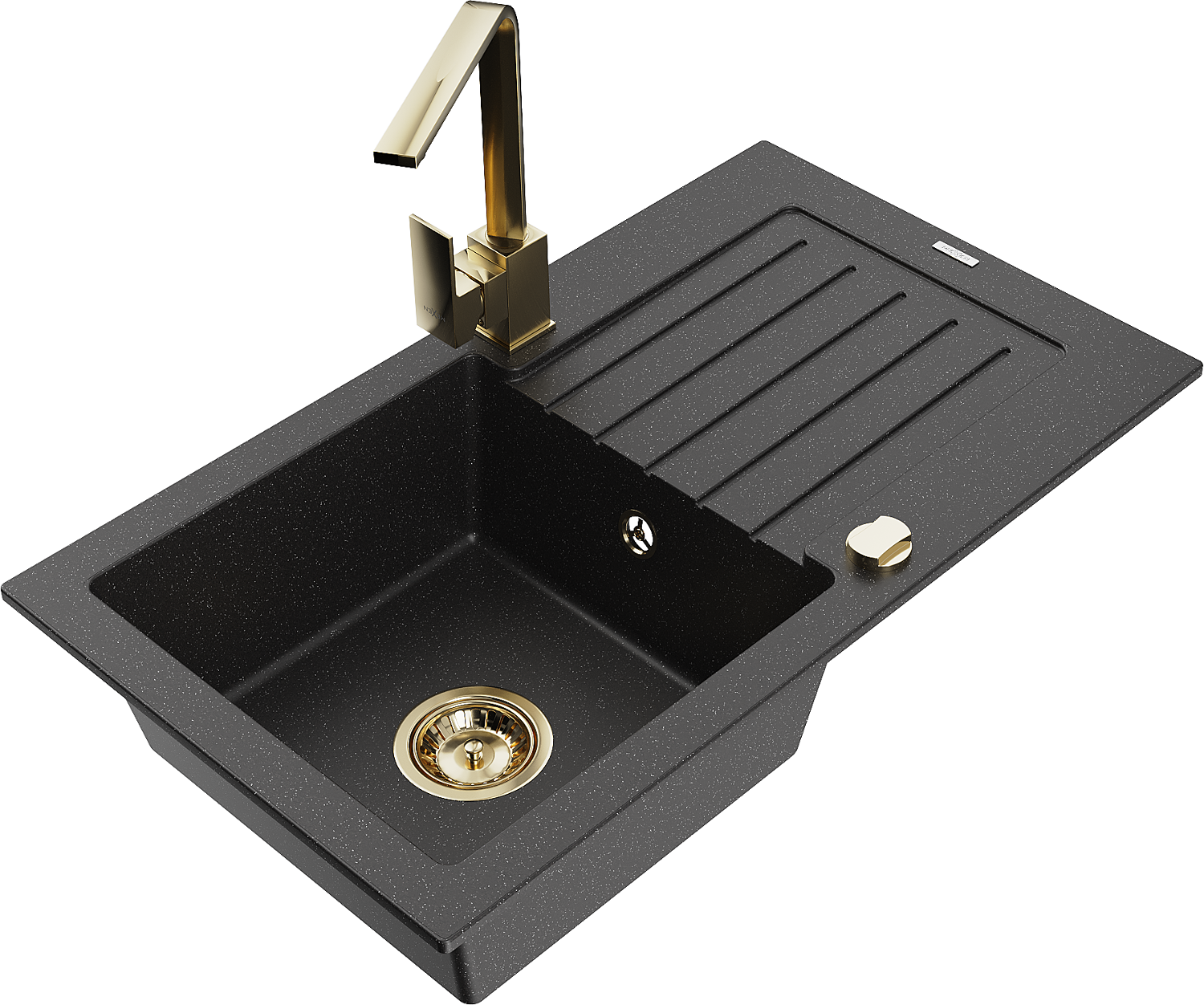 Mexen Pablo lavello in granito 1-vasca con sgocciolatoio e rubinetto cucina Rita, nero/metallico argento- 6510-73-670300-50