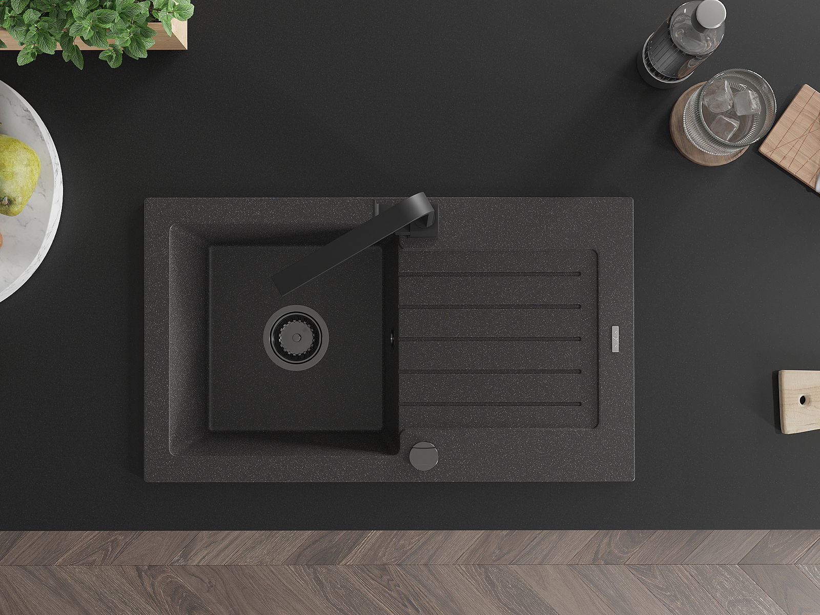 Il lavello è realizzato in granito di alta qualità. Rappresenta un complemento elegante e, soprattutto, pratico per ogni cucina, indipendentemente dal suo stile. L'alta qualità e la durata del granito garantiscono un utilizzo che dura per molti anni.