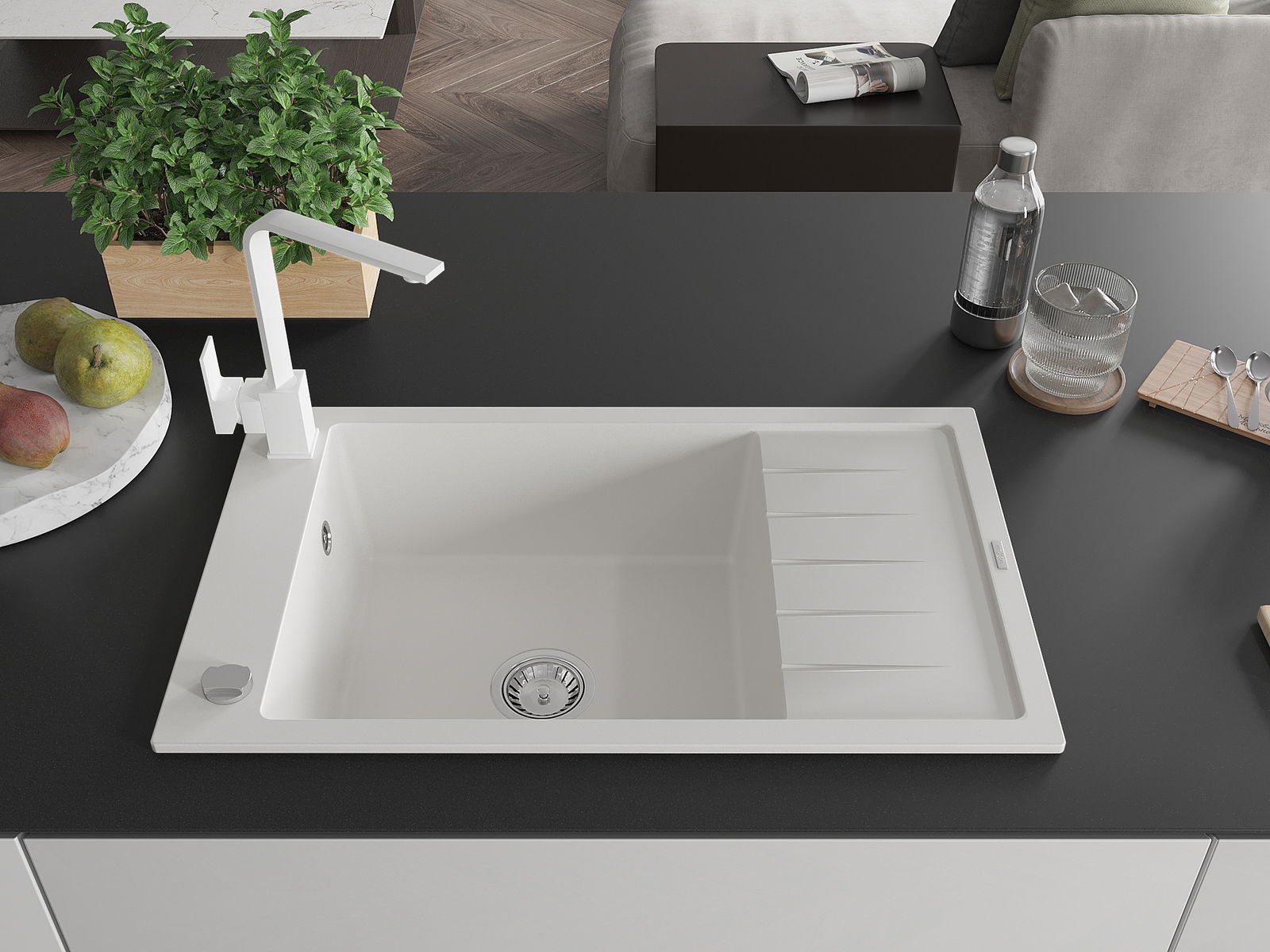 La scelta di un lavello con sgocciolatoio è una soluzione pratica che consente di riporre piatti, verdure e frutta lavati. Lo sgocciolatoio facilita la cucina quotidiana e aiuta a mantenere l'ordine in cucina.