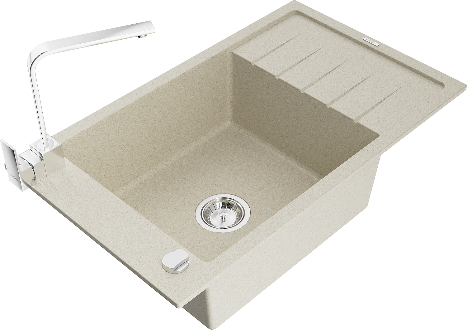 Mexen Elias lavello da cucina in granito 1-vasca con sgocciolatoio e miscelatore cucina Rita, beige - 6511-69-670300-00