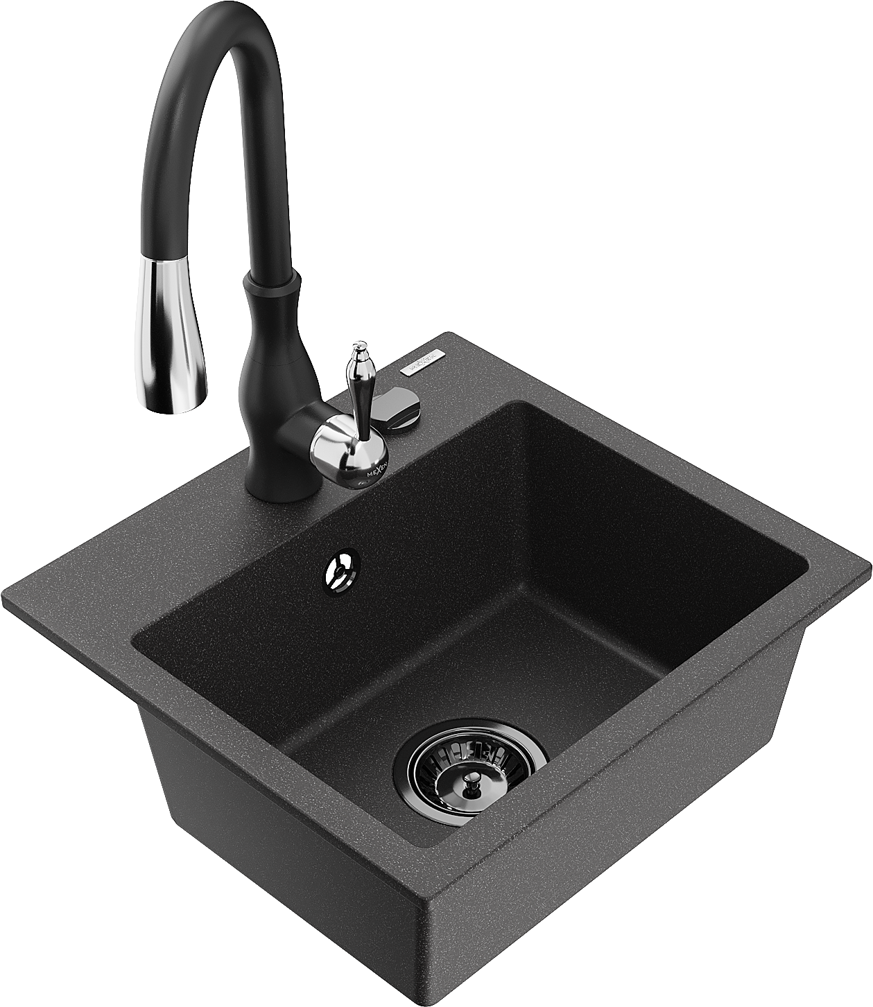 Mexen Milo lavello in granito a 1 vasca con miscelatore da cucina Savita, nero maculato - 6505-76-672601-70-B