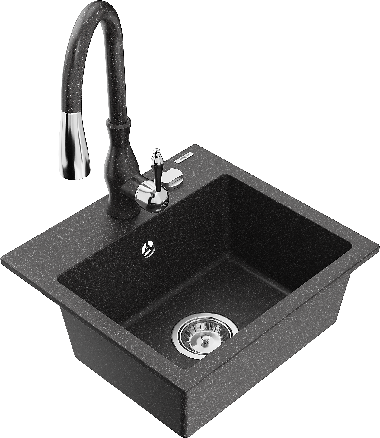 Mexen Milo lavello da cucina in granito con 1 vasca e miscelatore Savita, nero maculato - 6505-76-672601-76