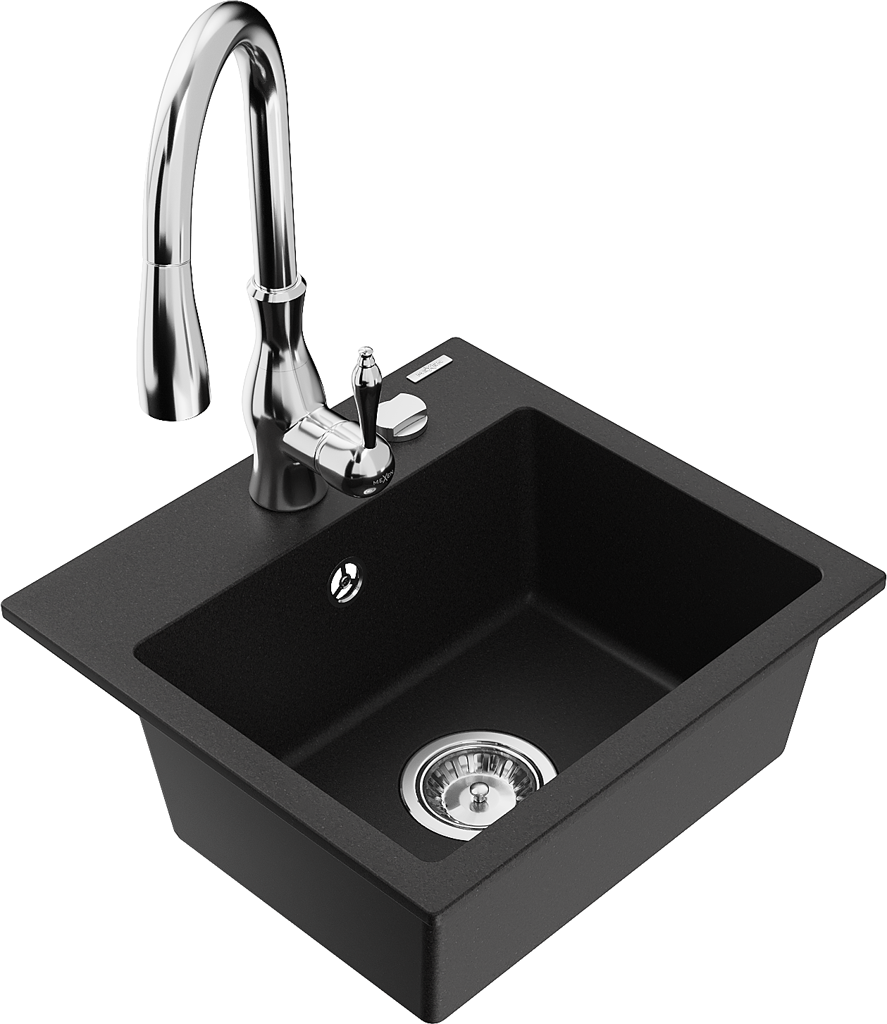 Mexen Milo lavello in granito a 1 vasca con miscelatore da cucina Savita, nero - 6505-77-672601-00