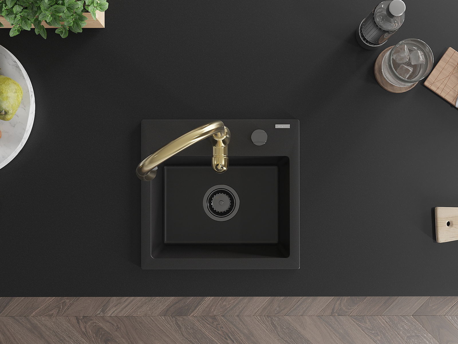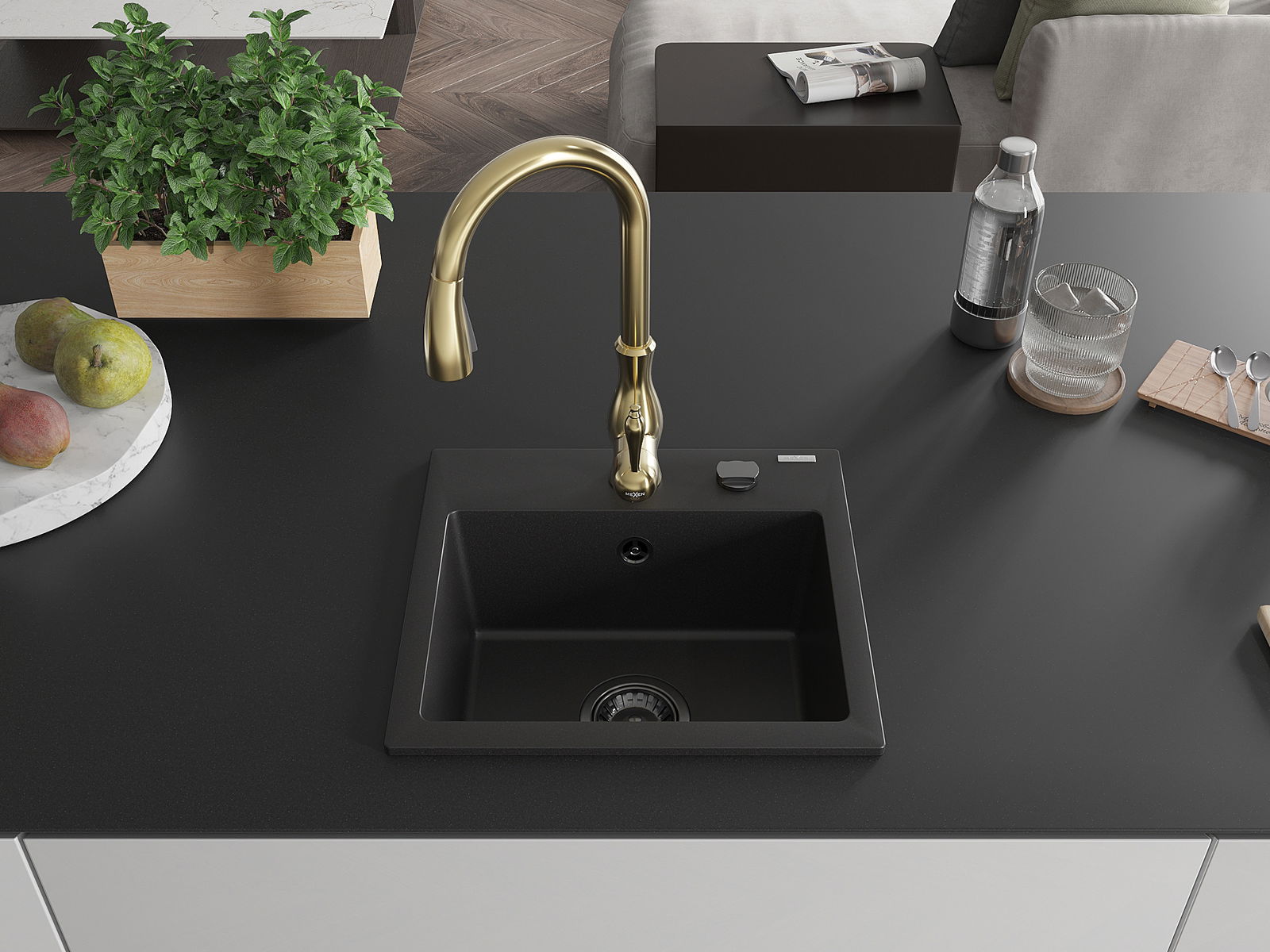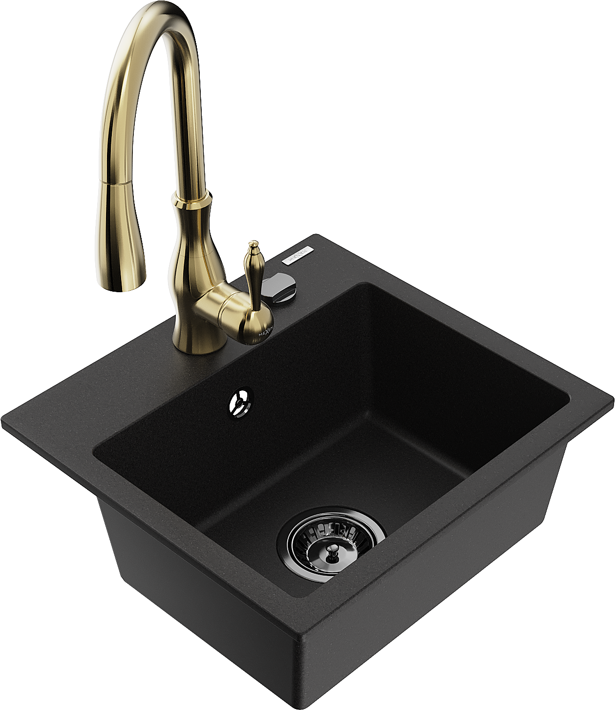Mexen Milo lavello da cucina in granito 1-vasca con miscelatore Savita, nero - 6505-77-672601-50-B