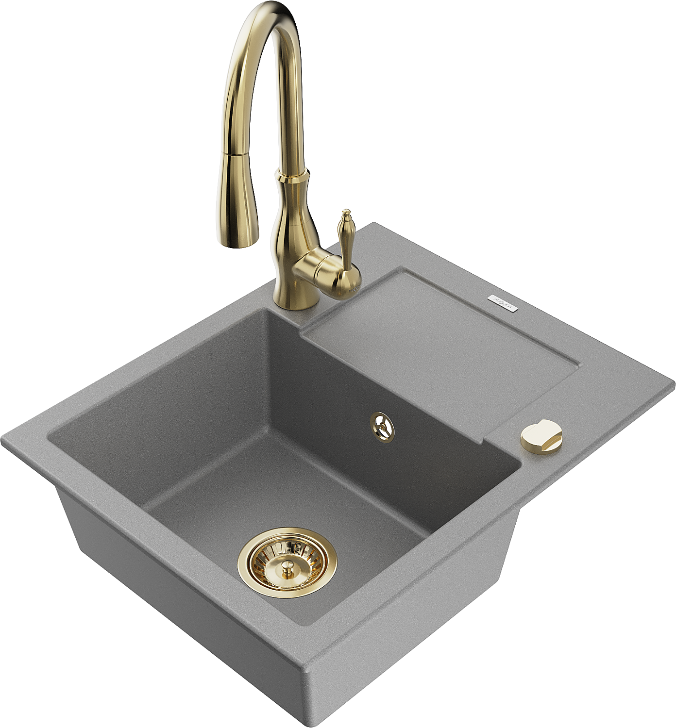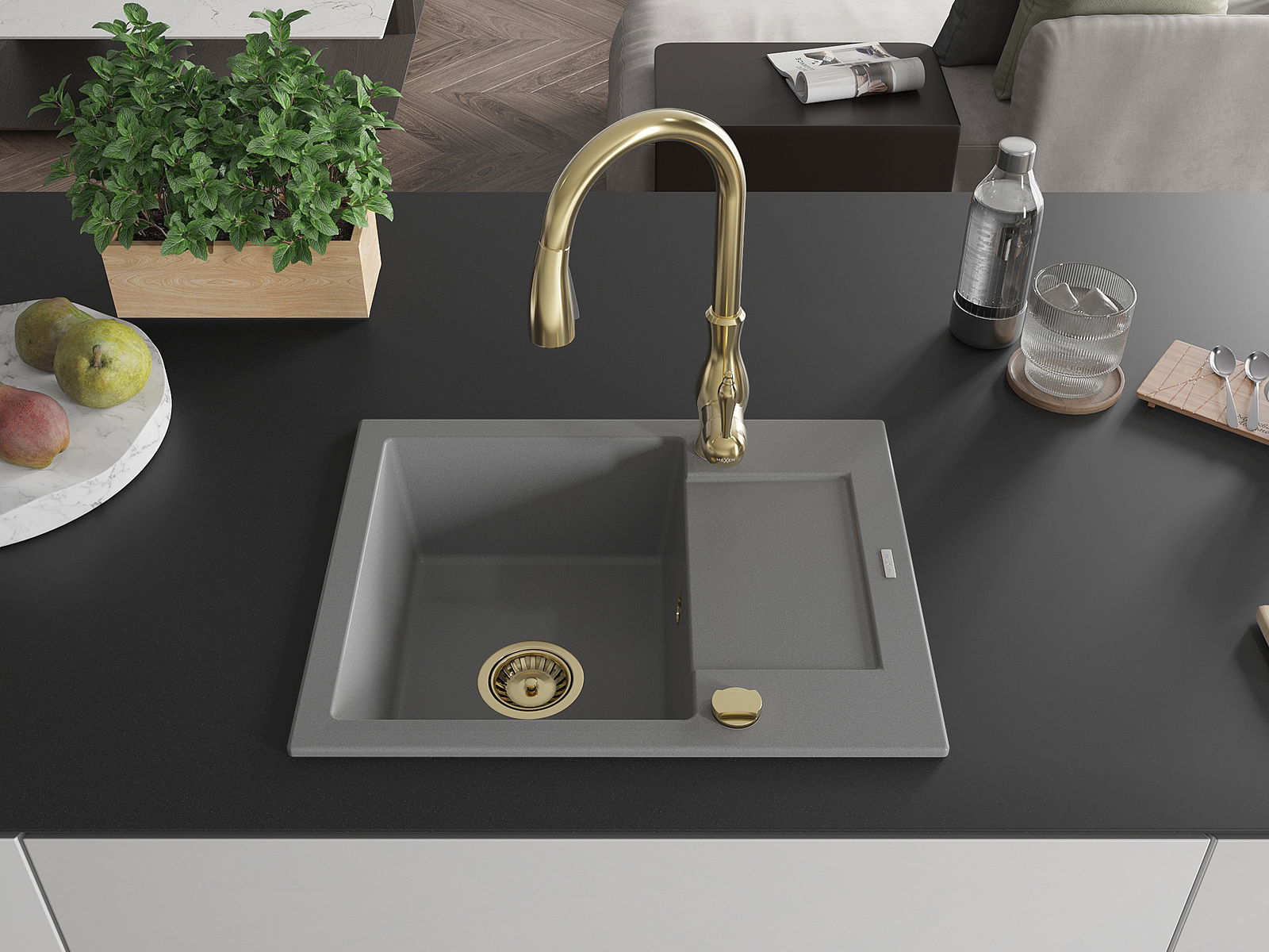 Mexen Enzo lavello in granito 1-vasca con sgocciolatoio e miscelatore cucina Savita, grigio - 6506-71-672601-50