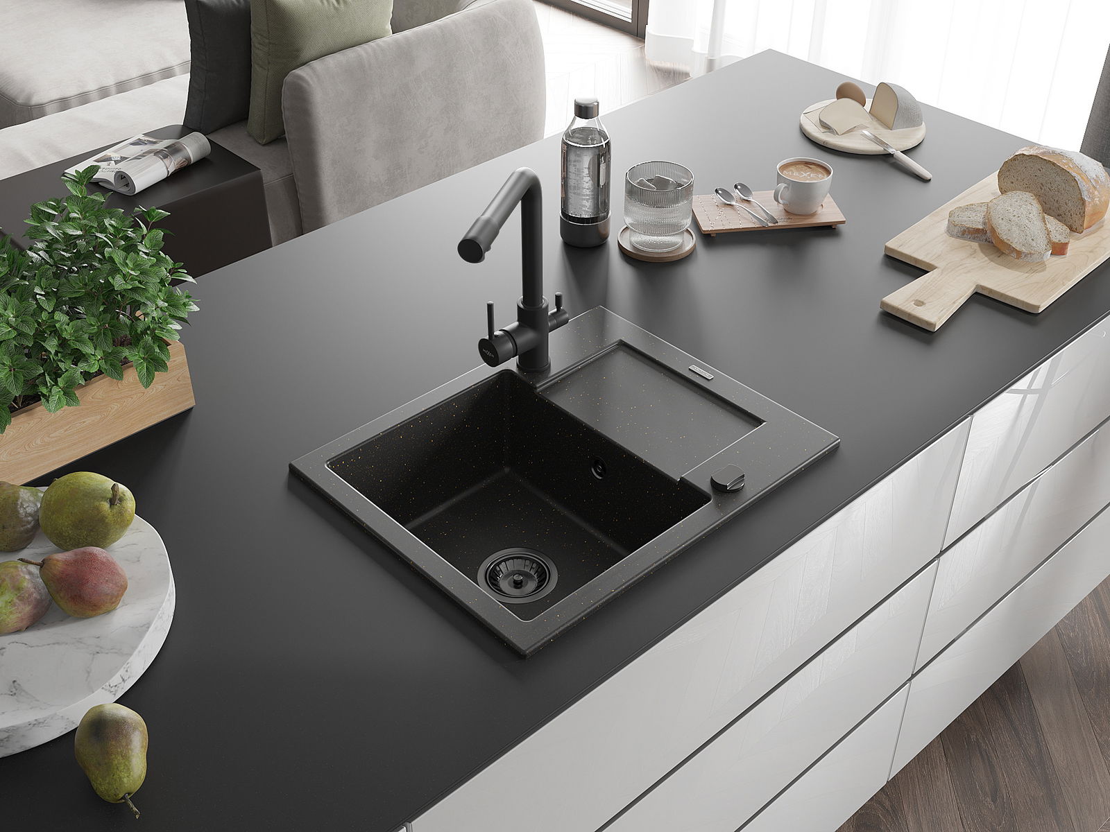 La scelta di un lavello con sgocciolatoio è una soluzione pratica che consente di riporre piatti, verdure e frutta lavati. Lo sgocciolatoio facilita la cucina quotidiana e aiuta a mantenere l'ordine in cucina.