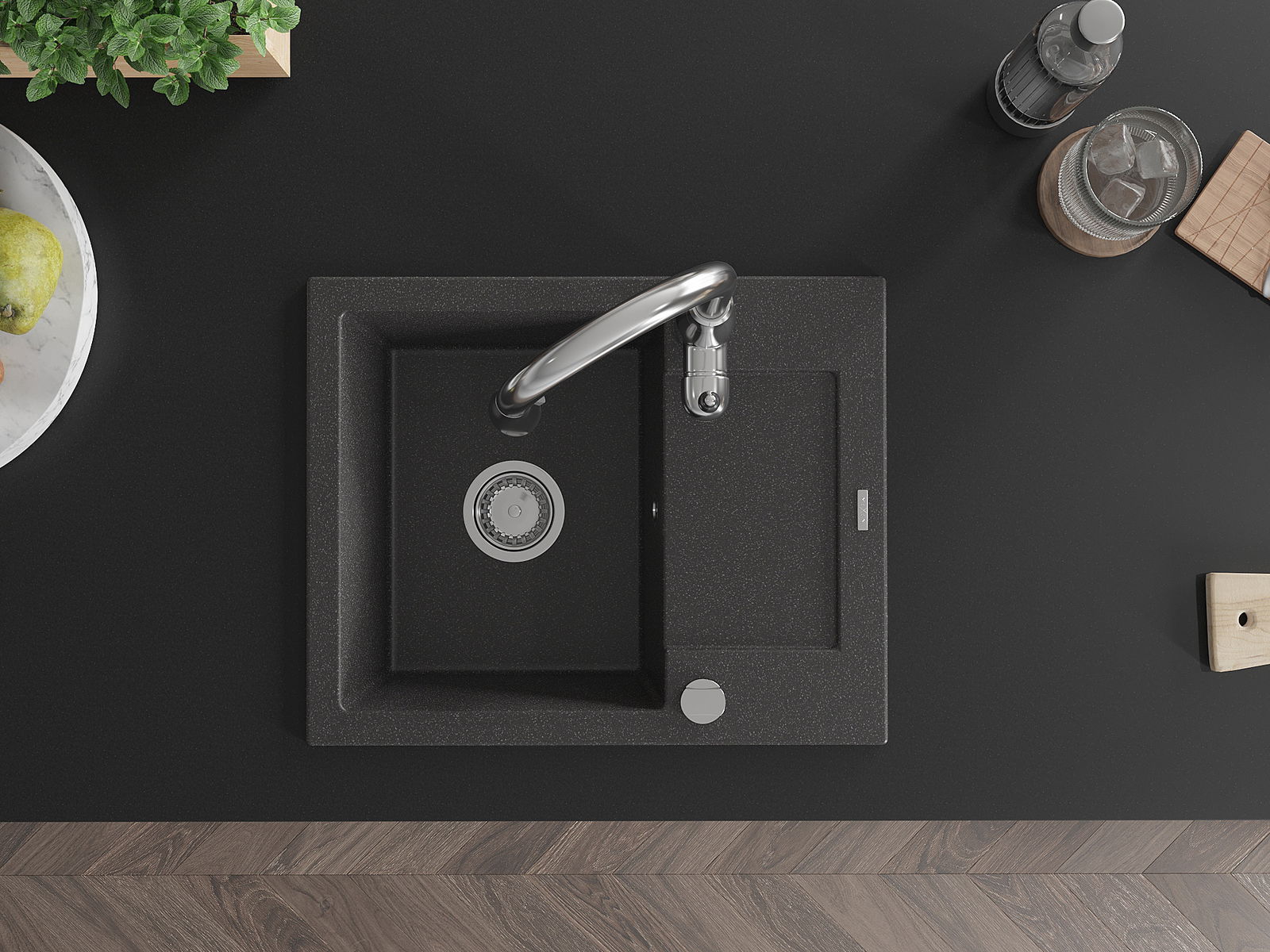 Mexen Enzo lavello in granito a 1 vasca con scolapiatti e rubinetto da cucina Savita, nero puntinato - 6506-76-672601-00