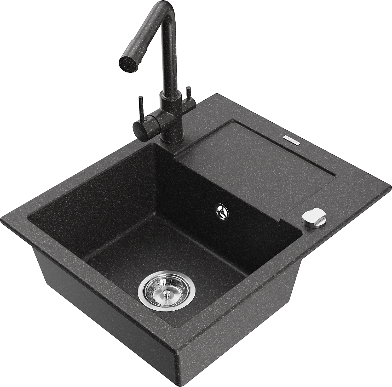 Mexen Enzo lavello da cucina in granito a 1 vasca con scolapiatti e miscelatore Duero, nero punteggiato - 6506-76-671600-76