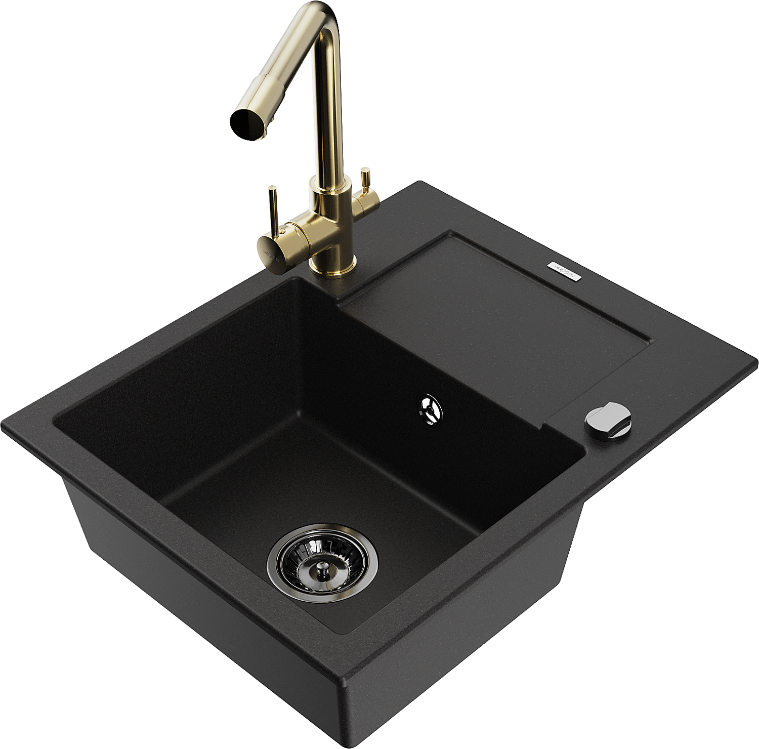 Mexen Enzo lavello in granito 1-vasca con scolapiatti e rubinetto da cucina Duero, nero - 6506-77-671600-50-B