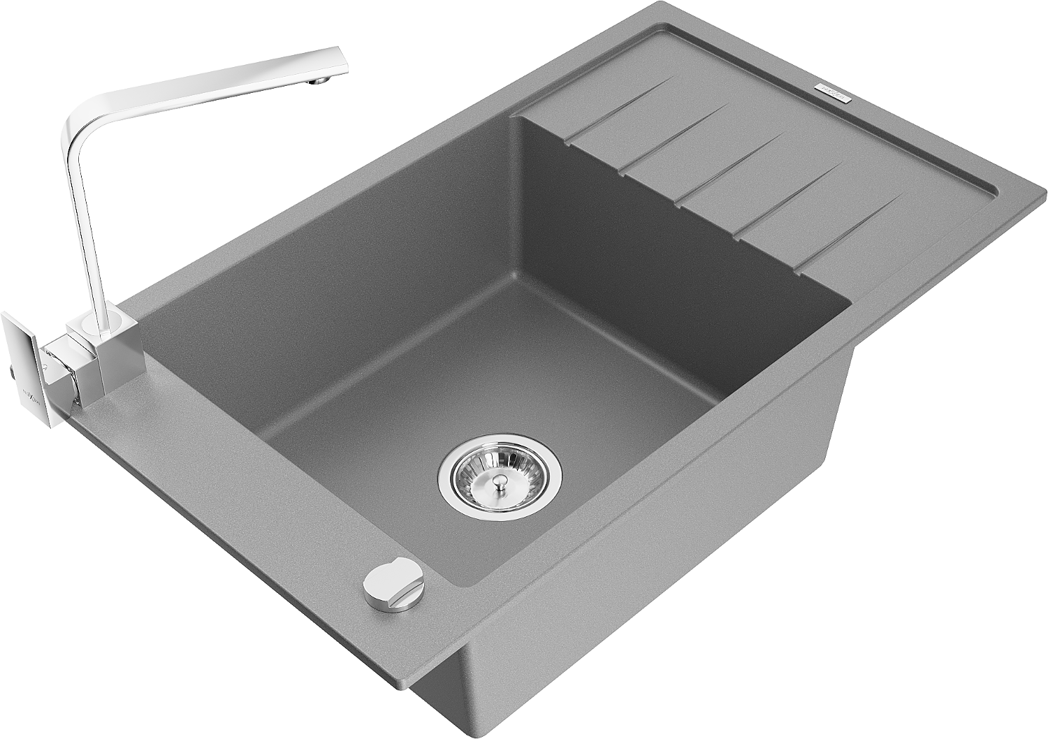 Mexen Elias lavello in granito a 1 vasca con scolapiatti e rubinetto da cucina Rita, grigio - 6511-71-670300-00