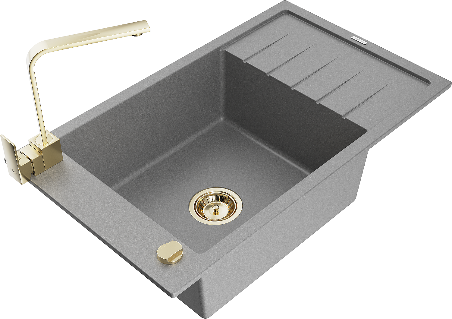 Mexen Elias lavello in granito a 1 vasca con scolapiatti e miscelatore da cucina Rita, grigio - 6511-71-670300-50