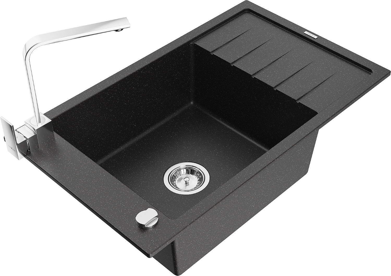 Mexen Elias lavello in granito a 1 vasca con scolapiatti e rubinetto cucina Rita, nero/metallo argentato - 6511-73-670300-00