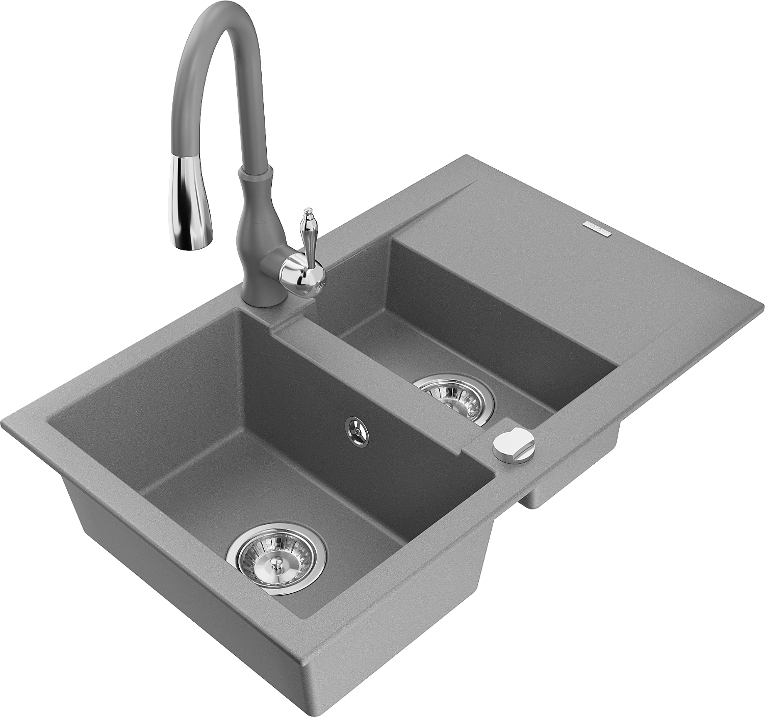 Mexen Gaspar lavello da cucina in granito 1,5 vasche con scolapiatti e rubinetto da cucina Savita, grigio - 6507-71-672601-71