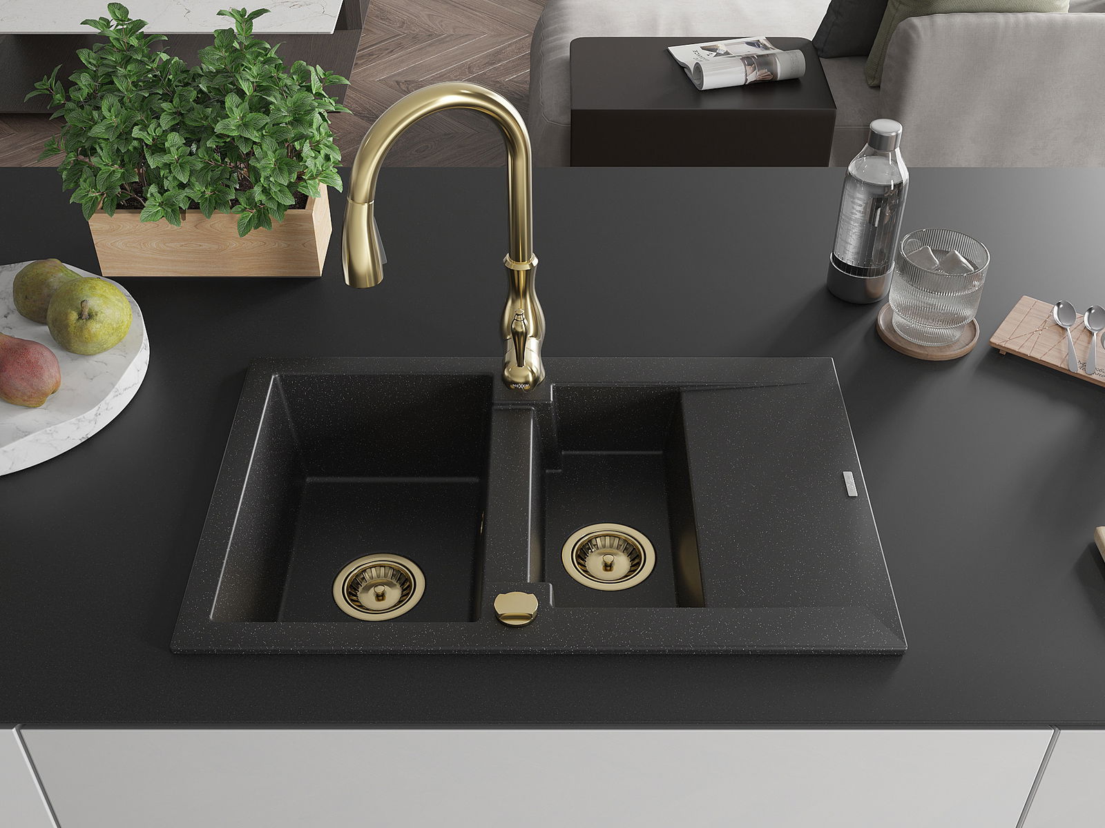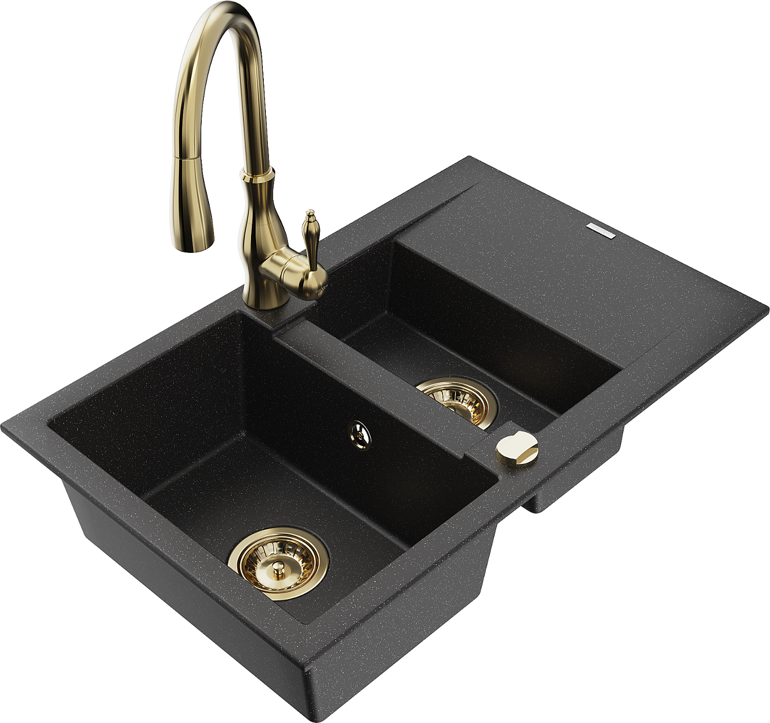 Il lavello è realizzato in granito di alta qualità. Rappresenta un complemento elegante e, soprattutto, pratico per ogni cucina, indipendentemente dal suo stile. L'alta qualità e la durata del granito garantiscono un utilizzo che dura per molti anni.