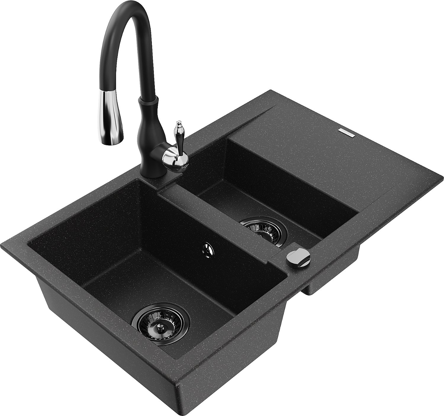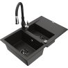 Mexen Gaspar lavello in granito 1,5 vasca con sgocciolatoio e rubinetto da cucina Savita, nero/argento - 6507-73-672601-70-B