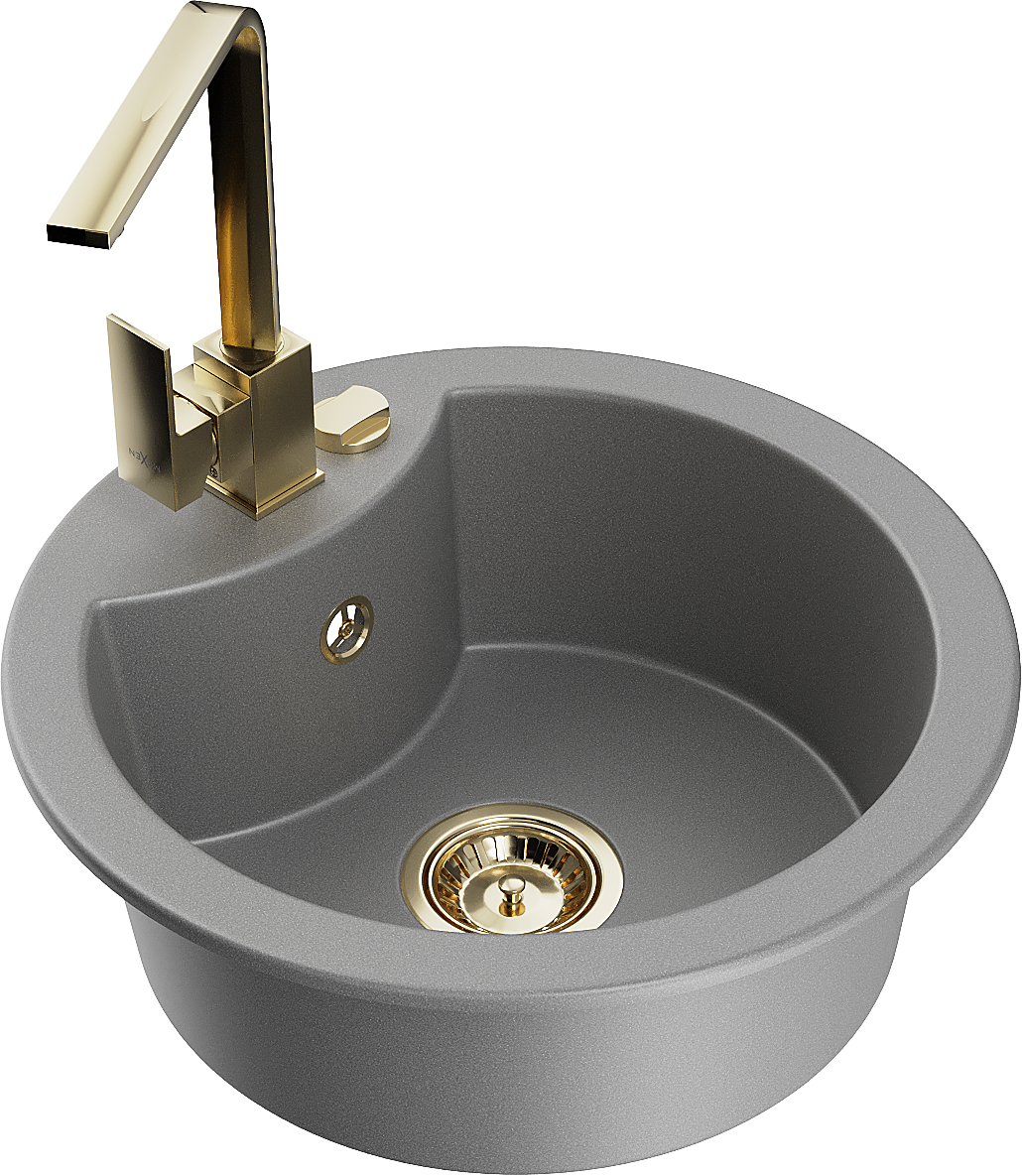 Mexen Diego lavello in granito a 1 vasca con rubinetto cucina Rita, grigio - 6512-71-670300-50